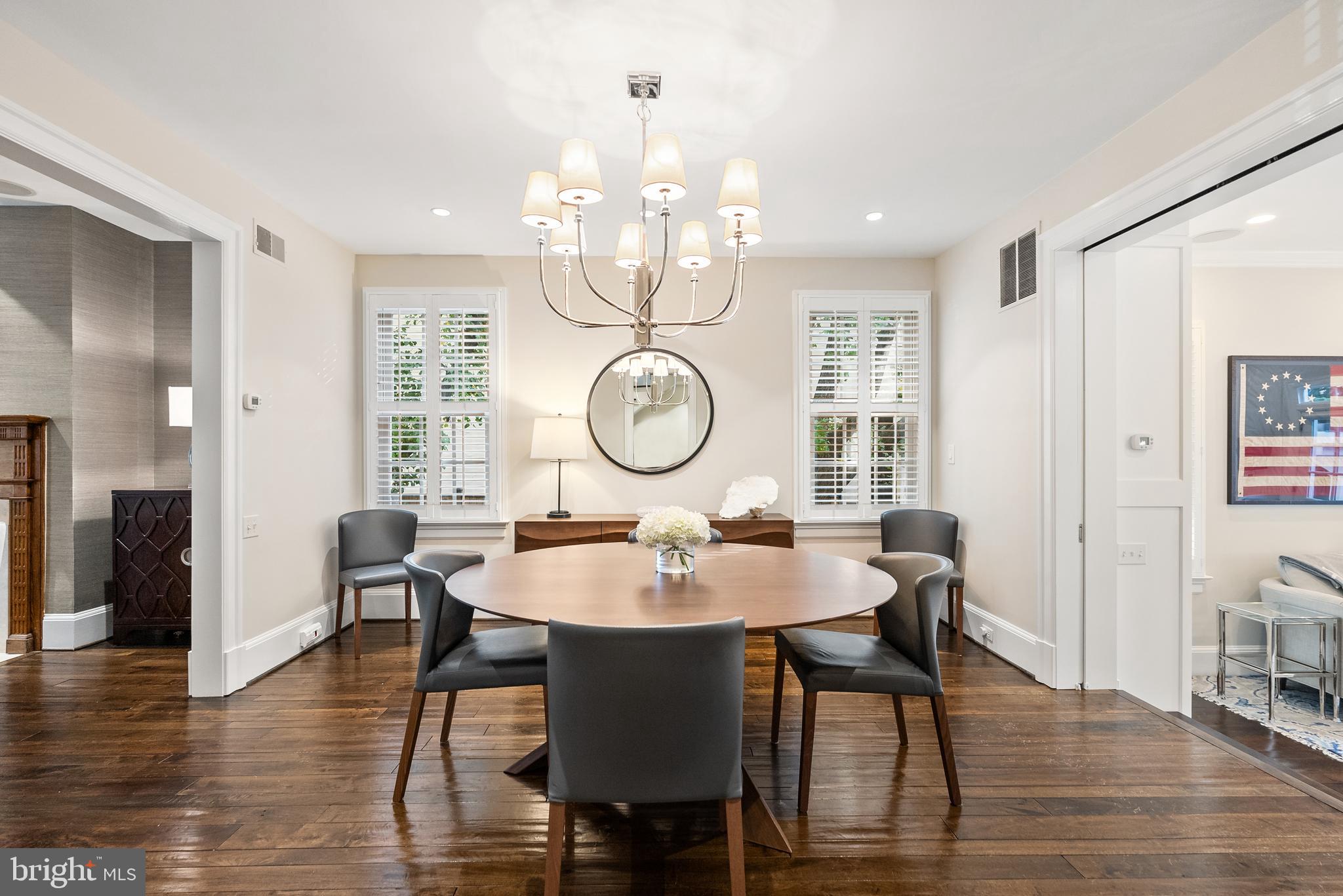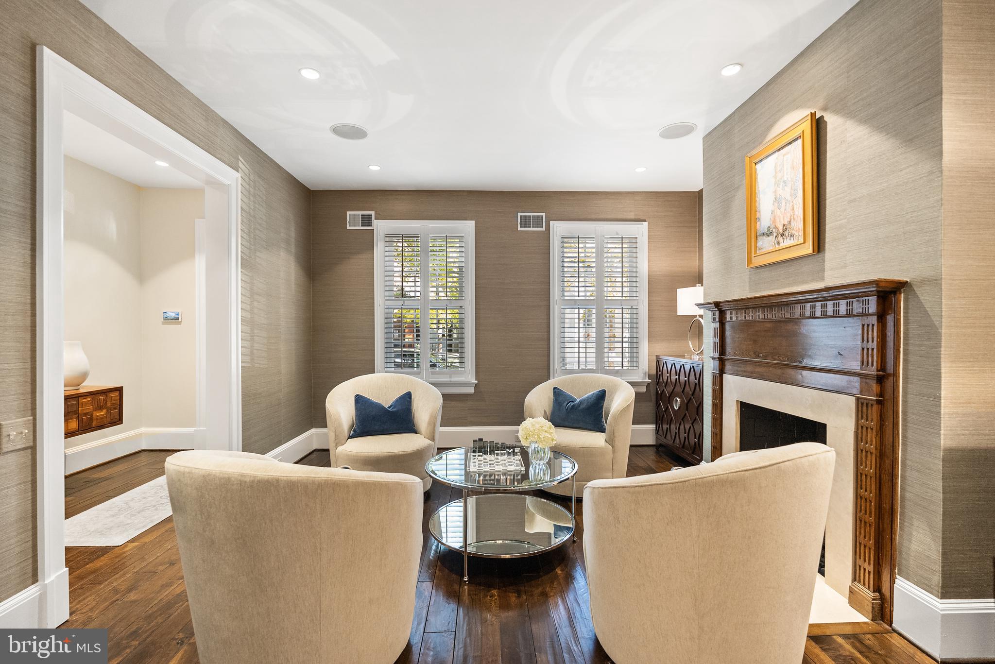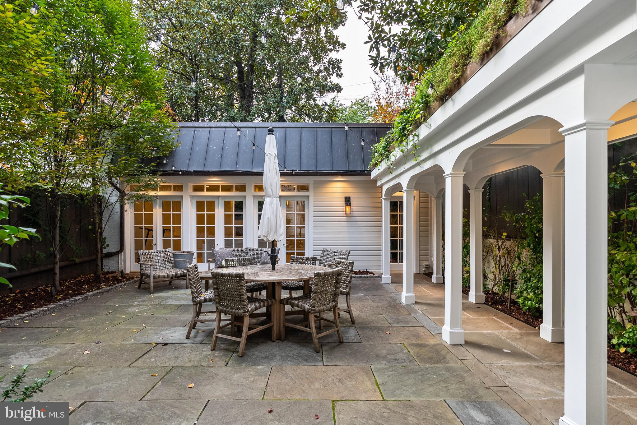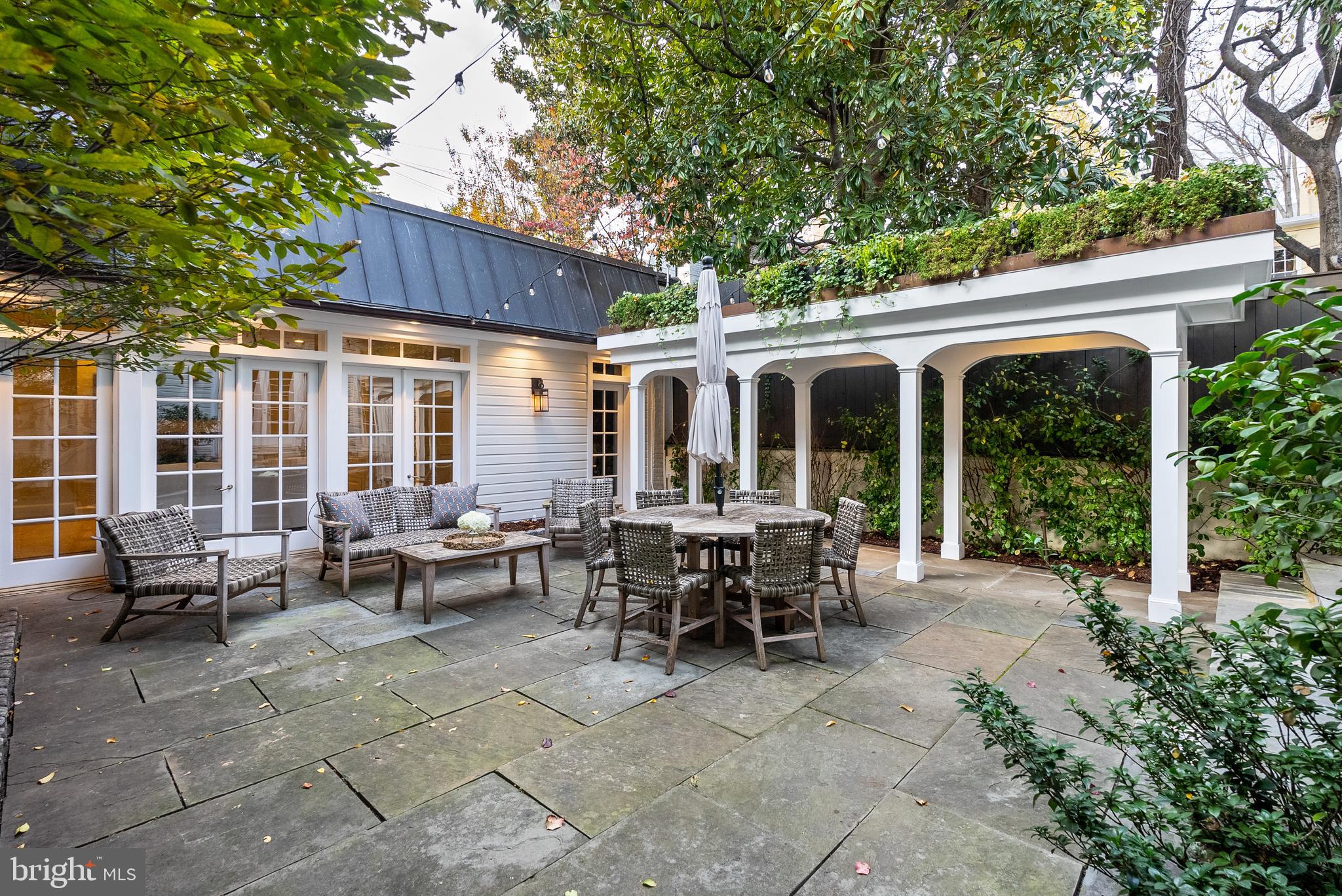 Nestled on a picturesque tree-lined street in the heart of Georgetown, this beautifully renovated semi-detached Federal residence, built circa 1830, is a rare gem featuring a thoughtfully updated open floor plan and a charming detached carriage house. The residence seamlessly combines historic elegance with modern-day amenities for sophisticated living and entertaining. The main level offers a spacious, open layout designed for entertaining, with lovely scaled rooms that are bathed in natural light from three exposures. Attractive hardwood floors stretch throughout, adding warmth and character. A gracious entry foyer welcomes you into the sophisticated living room, where high ceilings and a central fireplace with an intricately detailed wooden mantel create an inviting ambiance. Moving through the formal dining room, you'll find the fully renovated gourmet kitchen, equipped with a large peninsula with a breakfast bar, high-end appliances, custom cabinetry, and a spacious pantry. The kitchen space is generous and offers the ability to have a breakfast table and/or sofa seating. There are multiple doors with transom windows leading to the rear terrace and garden, seamlessly blending indoor and outdoor spaces. For added convenience, a powder room is located on this level. On the second floor, the luxurious primary suite occupies a private position at the back of the house. Generous in scale, it opens to a Juliet balcony that overlooks the serene garden. This suite features an impressive walk-in closet and a spa-inspired bathroom, complete with dual vanities, a spacious shower with a bench and multiple fixtures, and a separate water closet. Also on this level is a second spacious bedroom, adorned with three large windows and charming built-ins. This bedroom shares the floor with a full bathroom and a large hall closet. The lower level offers a versatile recreation room or office with built-in shelving, ideal for work or relaxation. This level also includes a third bedroom with a decorative fireplace, built-ins, and a private entrance from the front of the house, making it perfect for guests. A full bathroom and a built-in bar with a wine refrigerator add to the lower level's appeal, along with a laundry room that includes a utility sink and ample storage. The outdoor space is equally impressive, with a private rear terrace and beautifully landscaped gardens that are perfect for entertaining. A breezeway leads to the detached and beautifully finished carriage house, which provides additional living space with a large sitting area, fireplace, built-in desk with office storage, bathroom, and a wet bar. For added convenience, there is a gated parking area that can accommodate one car, as well as a charming storage shed. This exceptional Georgetown residence offers an unparalleled blend of historic charm and modern conveniences, making it an ideal home for both intimate living and elegant entertaining. Georgetown's prime location places residents just minutes from the White House and key downtown DC destinations, offering unparalleled convenience for city living. Georgetown's easy access to major routes provides a straightforward commute to both Reagan National and Dulles International Airports, making travel seamless for residents.