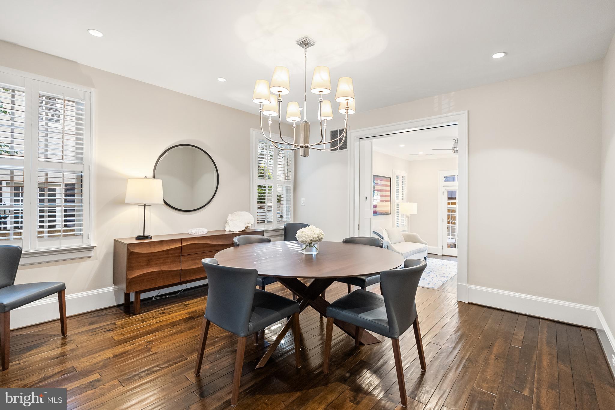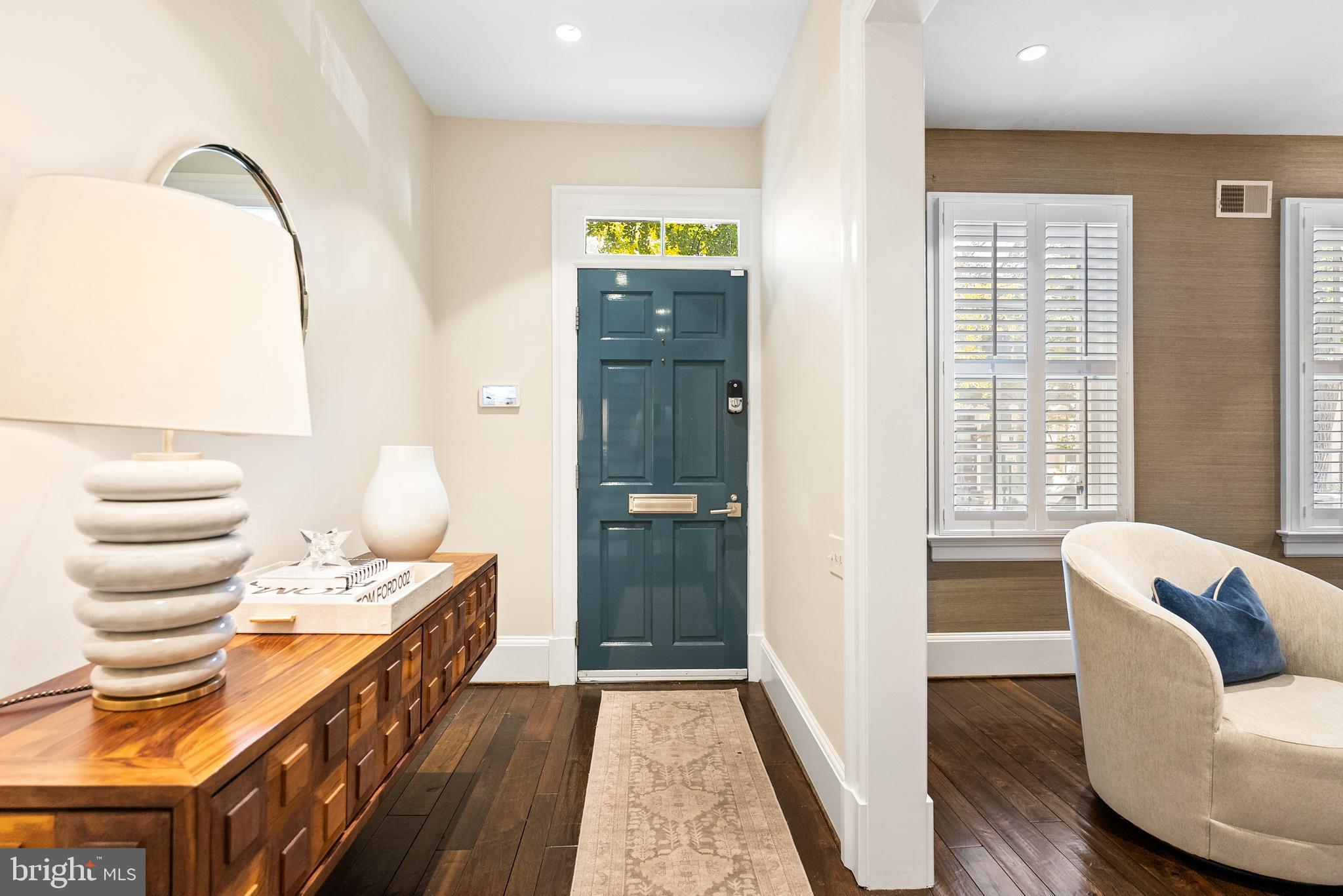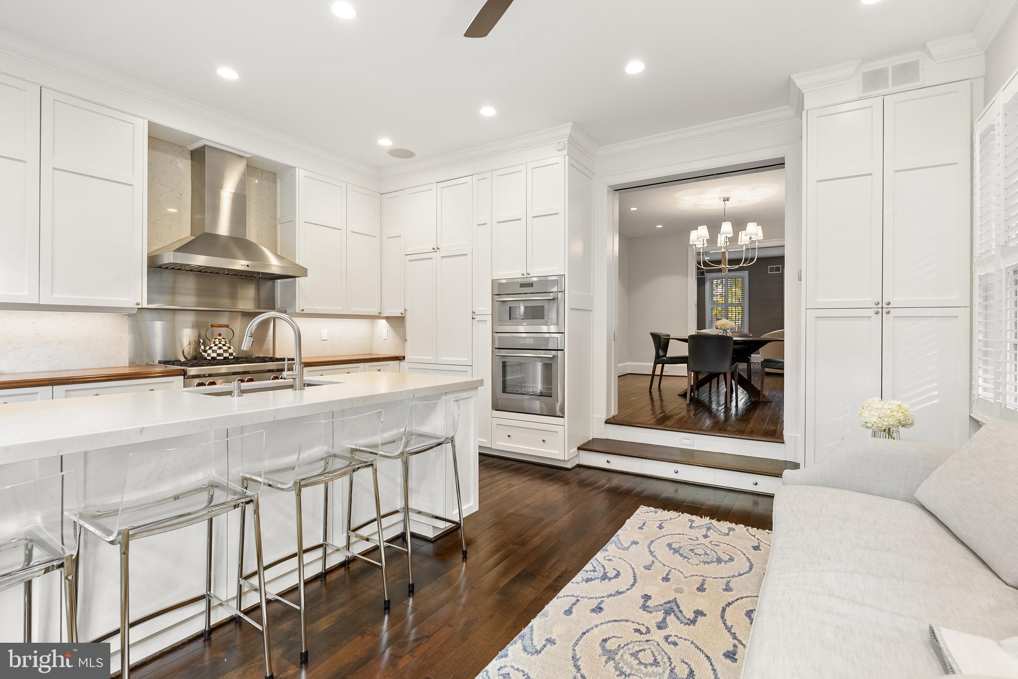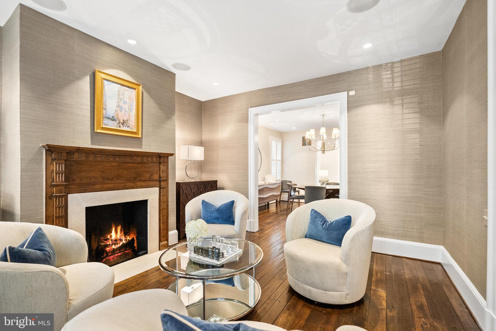 Nestled on a picturesque tree-lined street in the heart of Georgetown, this beautifully renovated semi-detached Federal residence, built circa 1830, is a rare gem featuring a thoughtfully updated open floor plan and a charming detached carriage house. The residence seamlessly combines historic elegance with modern-day amenities for sophisticated living and entertaining. The main level offers a spacious, open layout designed for entertaining, with lovely scaled rooms that are bathed in natural light from three exposures. Attractive hardwood floors stretch throughout, adding warmth and character. A gracious entry foyer welcomes you into the sophisticated living room, where high ceilings and a central fireplace with an intricately detailed wooden mantel create an inviting ambiance. Moving through the formal dining room, you'll find the fully renovated gourmet kitchen, equipped with a large peninsula with a breakfast bar, high-end appliances, custom cabinetry, and a spacious pantry. The kitchen space is generous and offers the ability to have a breakfast table and/or sofa seating. There are multiple doors with transom windows leading to the rear terrace and garden, seamlessly blending indoor and outdoor spaces. For added convenience, a powder room is located on this level. On the second floor, the luxurious primary suite occupies a private position at the back of the house. Generous in scale, it opens to a Juliet balcony that overlooks the serene garden. This suite features an impressive walk-in closet and a spa-inspired bathroom, complete with dual vanities, a spacious shower with a bench and multiple fixtures, and a separate water closet. Also on this level is a second spacious bedroom, adorned with three large windows and charming built-ins. This bedroom shares the floor with a full bathroom and a large hall closet. The lower level offers a versatile recreation room or office with built-in shelving, ideal for work or relaxation. This level also includes a third bedroom with a decorative fireplace, built-ins, and a private entrance from the front of the house, making it perfect for guests. A full bathroom and a built-in bar with a wine refrigerator add to the lower level's appeal, along with a laundry room that includes a utility sink and ample storage. The outdoor space is equally impressive, with a private rear terrace and beautifully landscaped gardens that are perfect for entertaining. A breezeway leads to the detached and beautifully finished carriage house, which provides additional living space with a large sitting area, fireplace, built-in desk with office storage, bathroom, and a wet bar. For added convenience, there is a gated parking area that can accommodate one car, as well as a charming storage shed. This exceptional Georgetown residence offers an unparalleled blend of historic charm and modern conveniences, making it an ideal home for both intimate living and elegant entertaining. Georgetown's prime location places residents just minutes from the White House and key downtown DC destinations, offering unparalleled convenience for city living. Georgetown's easy access to major routes provides a straightforward commute to both Reagan National and Dulles International Airports, making travel seamless for residents.