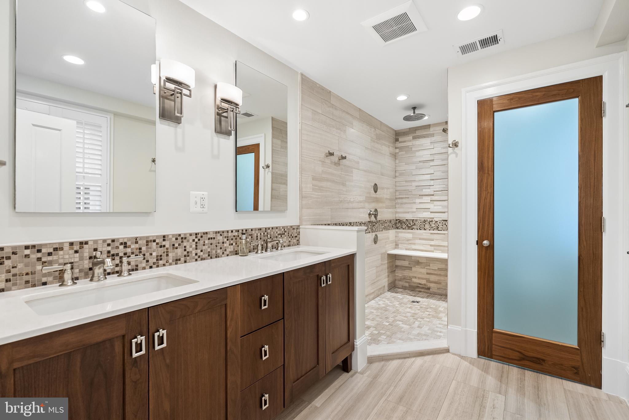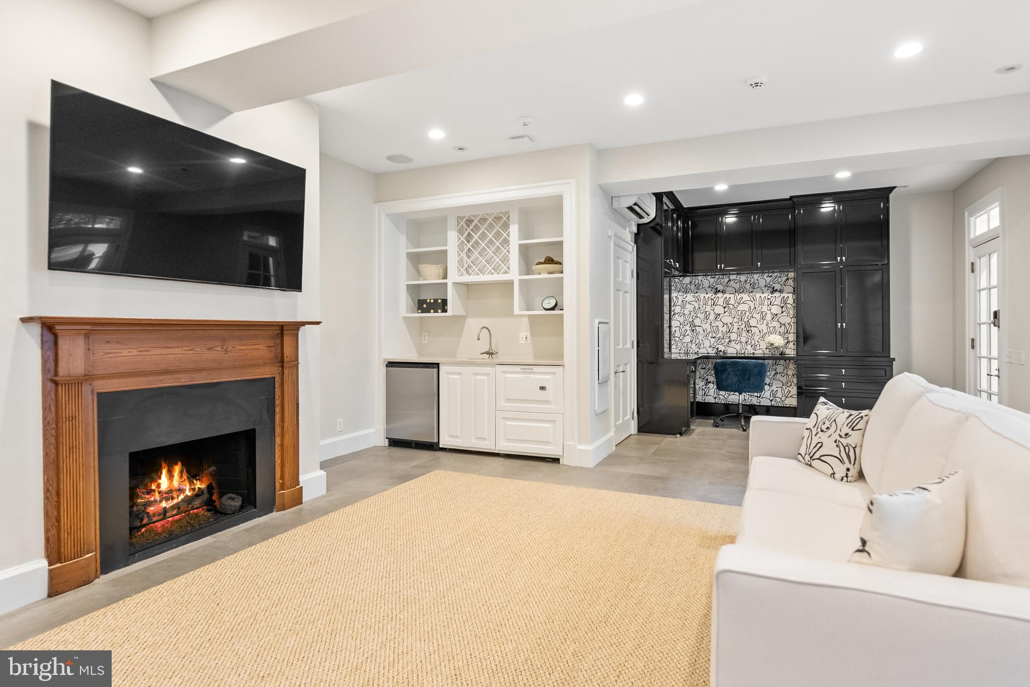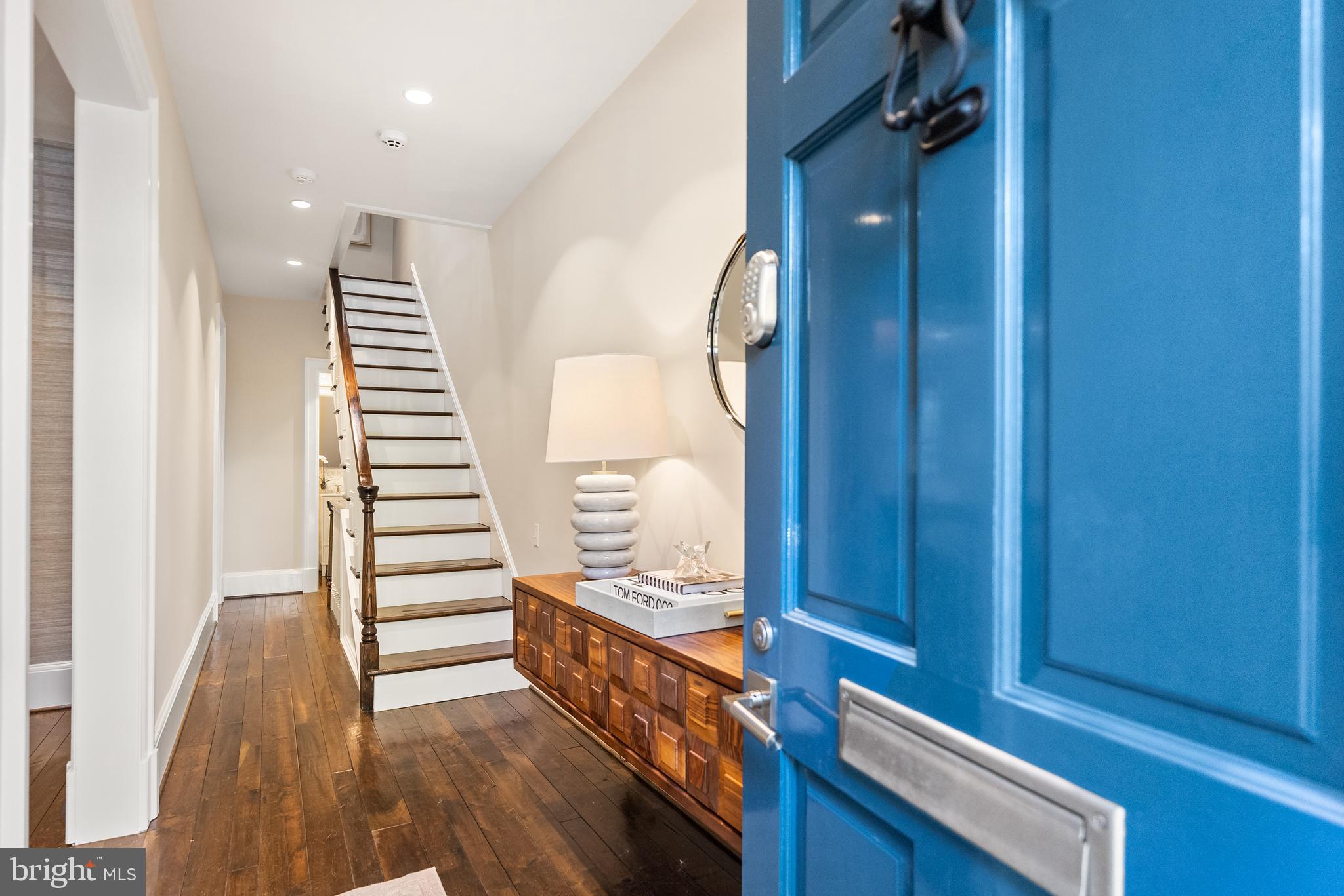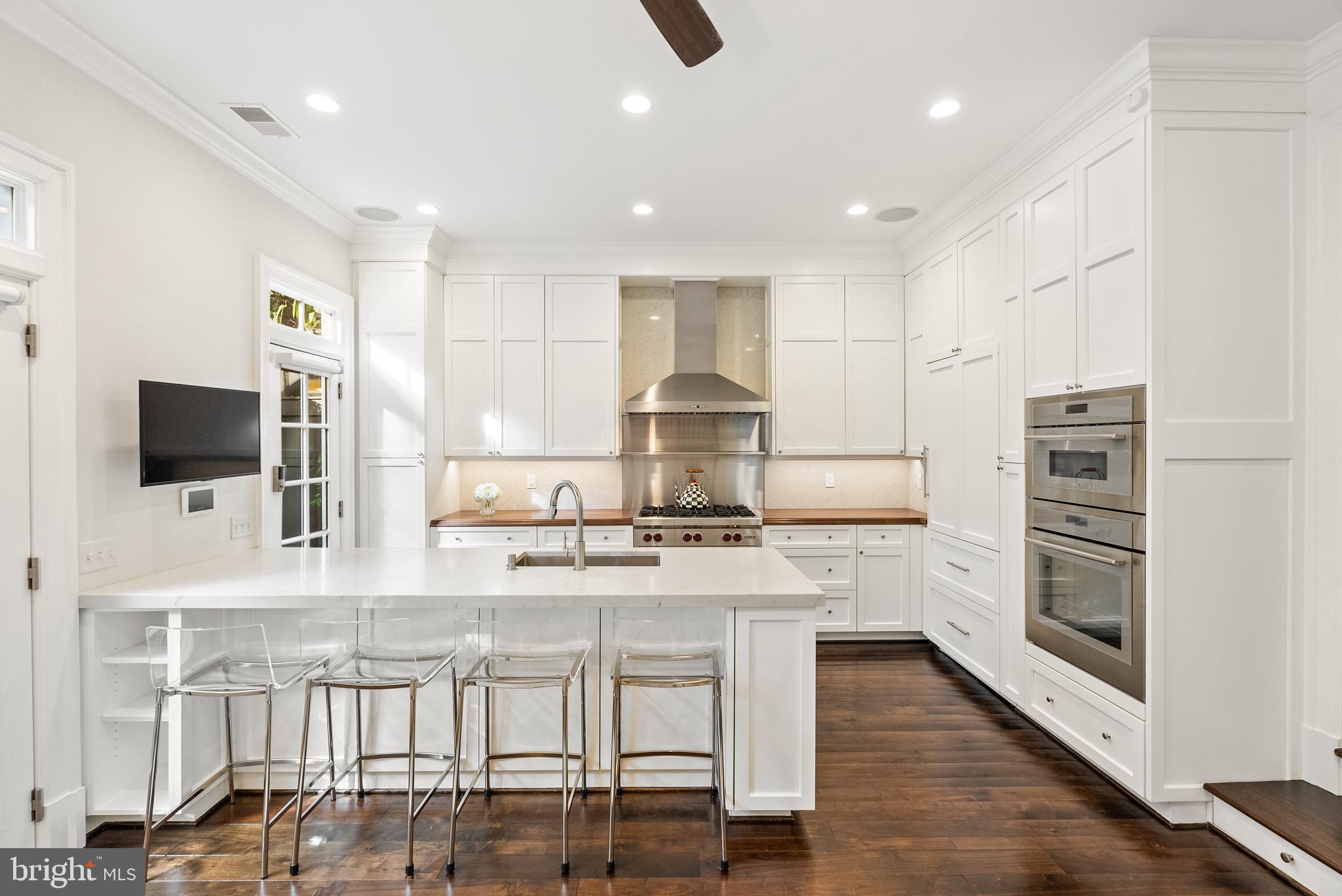 Nestled on a picturesque tree-lined street in the heart of Georgetown, this beautifully renovated semi-detached Federal residence, built circa 1830, is a rare gem featuring a thoughtfully updated open floor plan and a charming detached carriage house. The residence seamlessly combines historic elegance with modern-day amenities for sophisticated living and entertaining. The main level offers a spacious, open layout designed for entertaining, with lovely scaled rooms that are bathed in natural light from three exposures. Attractive hardwood floors stretch throughout, adding warmth and character. A gracious entry foyer welcomes you into the sophisticated living room, where high ceilings and a central fireplace with an intricately detailed wooden mantel create an inviting ambiance. Moving through the formal dining room, you'll find the fully renovated gourmet kitchen, equipped with a large peninsula with a breakfast bar, high-end appliances, custom cabinetry, and a spacious pantry. The kitchen space is generous and offers the ability to have a breakfast table and/or sofa seating. There are multiple doors with transom windows leading to the rear terrace and garden, seamlessly blending indoor and outdoor spaces. For added convenience, a powder room is located on this level. On the second floor, the luxurious primary suite occupies a private position at the back of the house. Generous in scale, it opens to a Juliet balcony that overlooks the serene garden. This suite features an impressive walk-in closet and a spa-inspired bathroom, complete with dual vanities, a spacious shower with a bench and multiple fixtures, and a separate water closet. Also on this level is a second spacious bedroom, adorned with three large windows and charming built-ins. This bedroom shares the floor with a full bathroom and a large hall closet. The lower level offers a versatile recreation room or office with built-in shelving, ideal for work or relaxation. This level also includes a third bedroom with a decorative fireplace, built-ins, and a private entrance from the front of the house, making it perfect for guests. A full bathroom and a built-in bar with a wine refrigerator add to the lower level's appeal, along with a laundry room that includes a utility sink and ample storage. The outdoor space is equally impressive, with a private rear terrace and beautifully landscaped gardens that are perfect for entertaining. A breezeway leads to the detached and beautifully finished carriage house, which provides additional living space with a large sitting area, fireplace, built-in desk with office storage, bathroom, and a wet bar. For added convenience, there is a gated parking area that can accommodate one car, as well as a charming storage shed. This exceptional Georgetown residence offers an unparalleled blend of historic charm and modern conveniences, making it an ideal home for both intimate living and elegant entertaining. Georgetown's prime location places residents just minutes from the White House and key downtown DC destinations, offering unparalleled convenience for city living. Georgetown's easy access to major routes provides a straightforward commute to both Reagan National and Dulles International Airports, making travel seamless for residents.