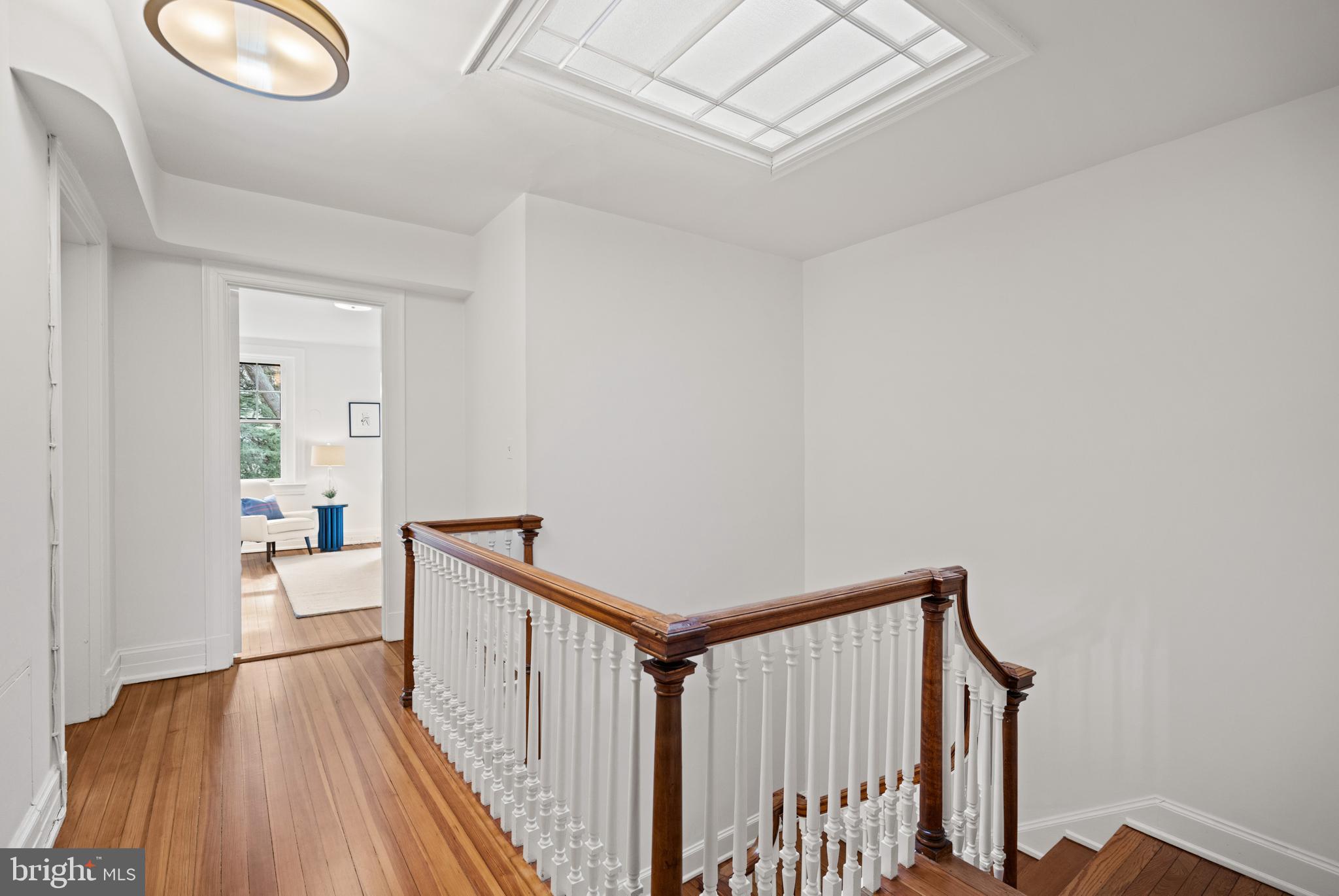 Upstairs, the primary suite at the front of the house provides a serene retreat, with a walk-in closet, sitting room, and bathroom suite. A generous bedroom at the rear, warmed by a fireplace, offers views of the garden, and a paneled office shares access to a well-appointed hall bathroom. A skylight illuminates the staircase leading to the third floor, which features a generously sized bedroom with an adjoining sitting room, a private balcony overlooking the picturesque street, and an ensuite bathroom. Two additional bedrooms share a full hall bathroom, completing this level with ample space for residents and guests.