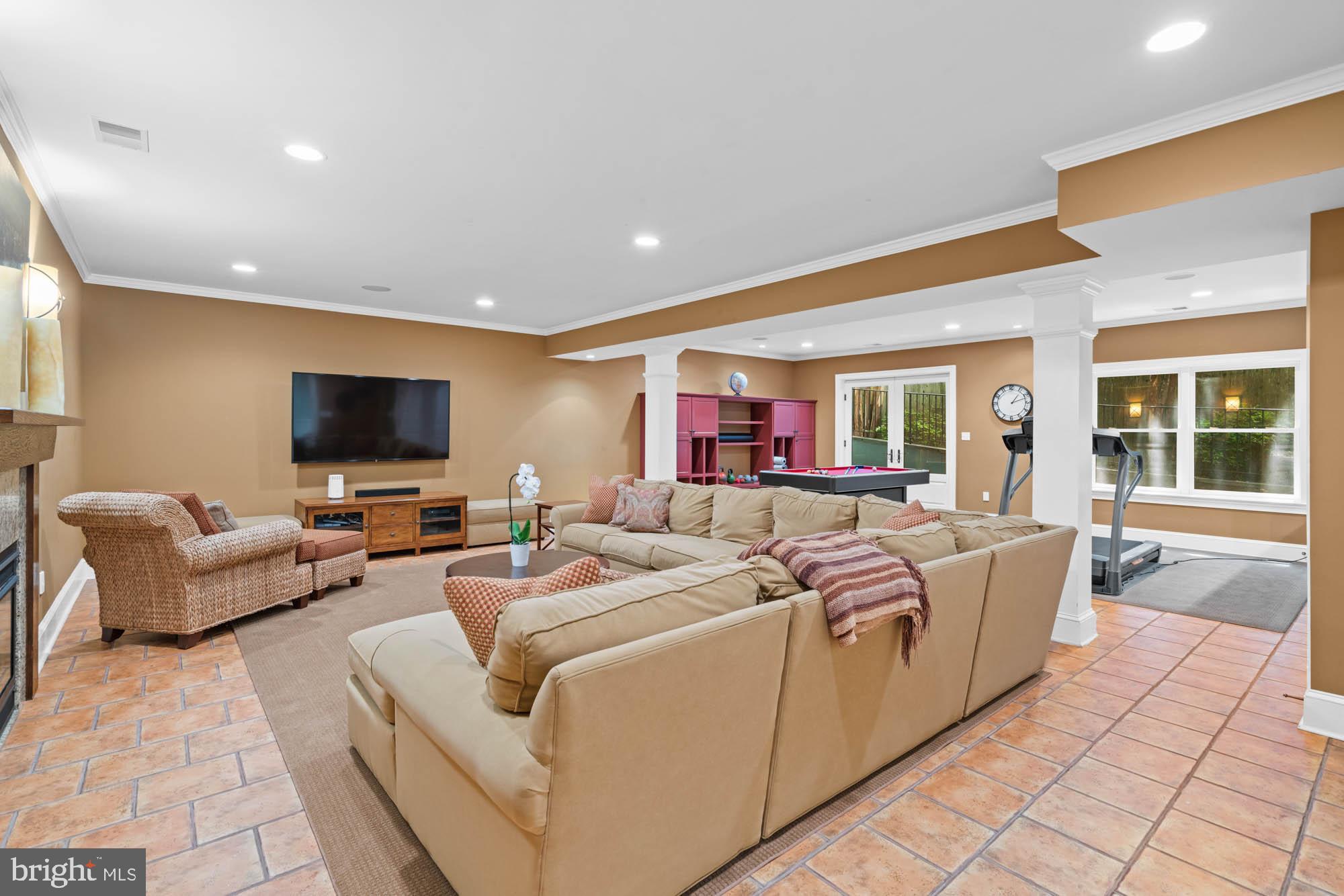 The fully finished lower level is designed for both entertaining and extended-stay living. This level features an oversized recreation room with a gas fireplace, guest or staff bedroom with an en-suite bathroom, an additional half bathroom, and a kitchenette. A well-equipped mudroom includes a second laundry area with sink and cabinetry and provides interior access to the oversized garage. There is also an additional surface parking space and a separate entrance that leads from this level to the backyard.