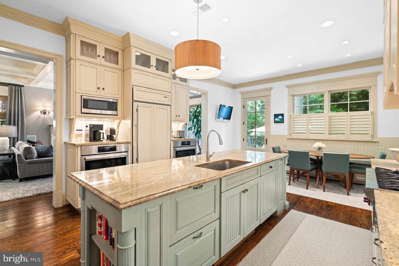 Set back on a picturesque, tree-lined street in the coveted Berkley neighborhood of Washington, D.C., this exceptional residence, masterfully designed by Chryssa Wolfe of Hanlon Design and Build, offers a sophisticated blend of classic architecture and contemporary living.