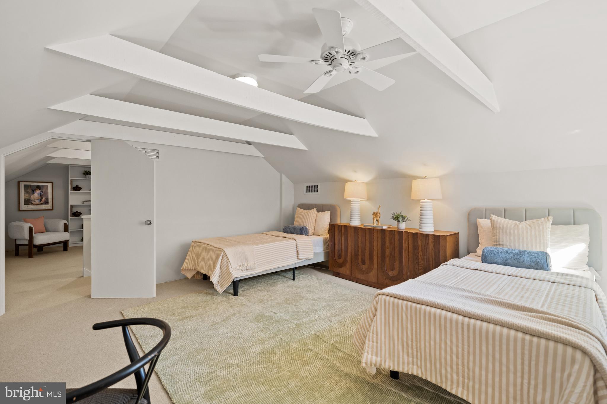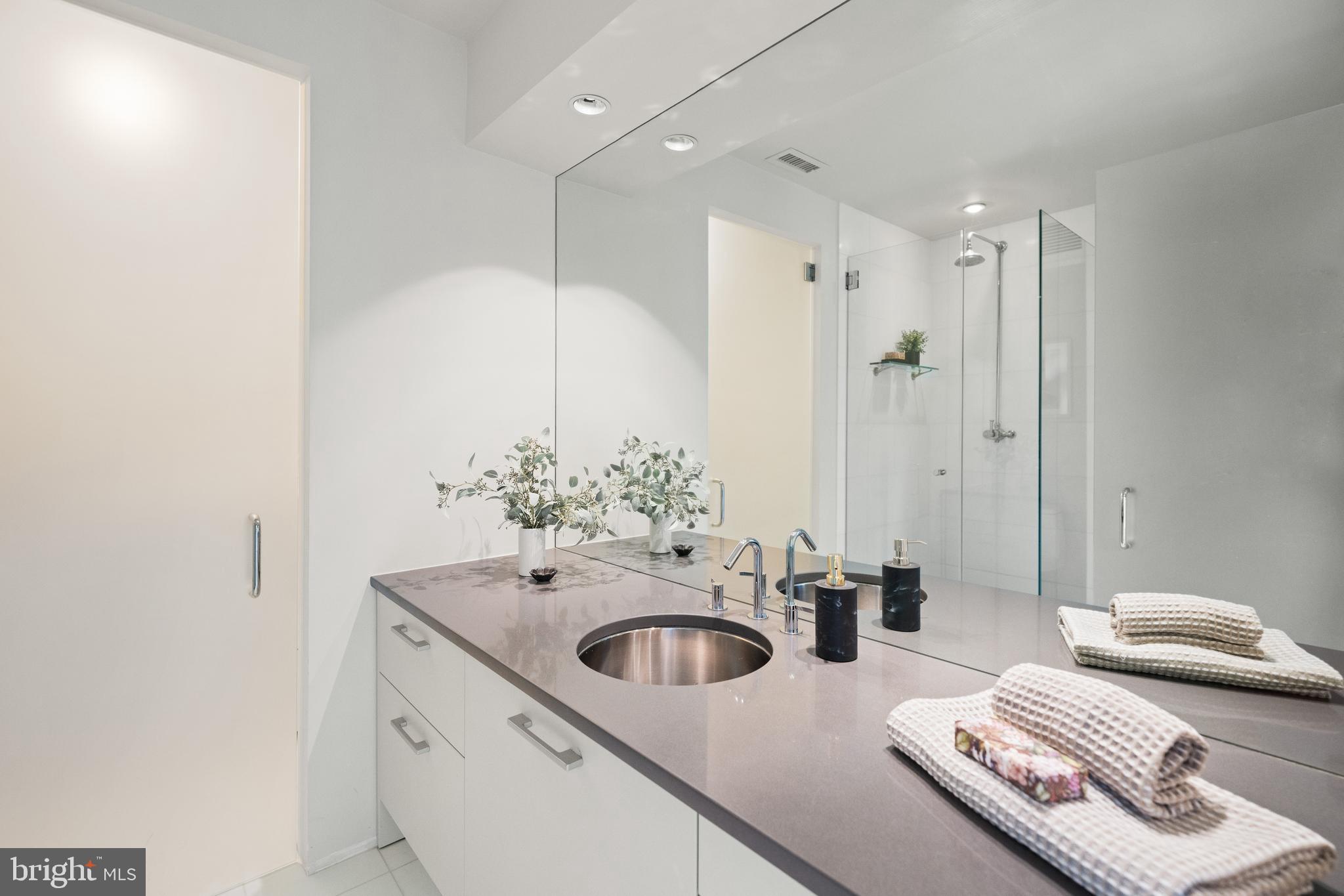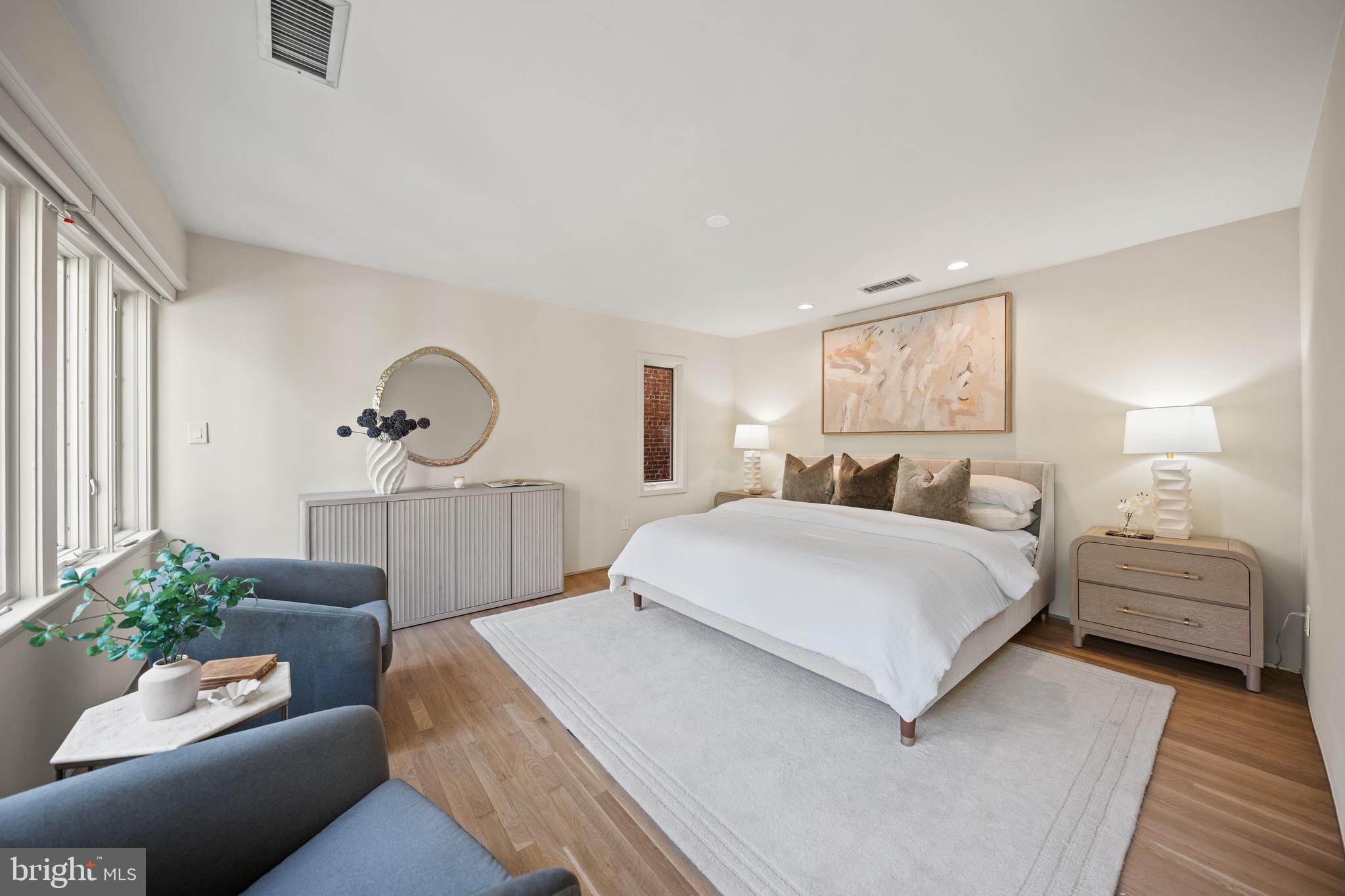 This contemporary residence offers generous scale, natural light, and a thoughtful layout across multiple levels. Clean lines, open spaces, and strong architectural elements create a home that is both functional and visually compelling. The entry foyer is spacious and filled with light, with a powder room, coat closet, and direct access to the one-car garage. A lower level just off the entry provides flexible space, well suited for a gym, office, or studio. A custom floating staircase connects the home's main levels. The kitchen, dining, and family areas are open and flow directly to landscaped gardens and a flagstone terrace. The outdoor space includes an in-ground pool and a pergola, creating a natural extension of the living area. One level above, the formal living room features a fireplace, high ceilings, and a wall of glass opening to a balcony. The adjacent library includes built-in shelving and can function as a reading room, office, or media space. The proportions on this level allow for comfortable everyday use as well as entertaining. The primary suite occupies its own floor and overlooks the garden. The bathroom includes a soaking tub, large shower, and a walk-in closet. A private balcony adds an additional outdoor connection. The next level includes a sitting room with a fireplace and balcony, an en-suite bedroom, an additional bedroom, a hall bathroom, and laundry. The top floor offers a fourth bedroom, along with a sitting room that can easily function as a fifth bedroom. White oak floors run throughout the home, reinforcing a consistent and clean aesthetic. The property is located on Bancroft Place, a quiet one-way street in the embassy district. It is within walking distance of Mitchell Park, Dupont Circle, restaurants, shops, museums, and cultural institutions. A well-designed home in a highly regarded location, offering space, light, and flexibility.