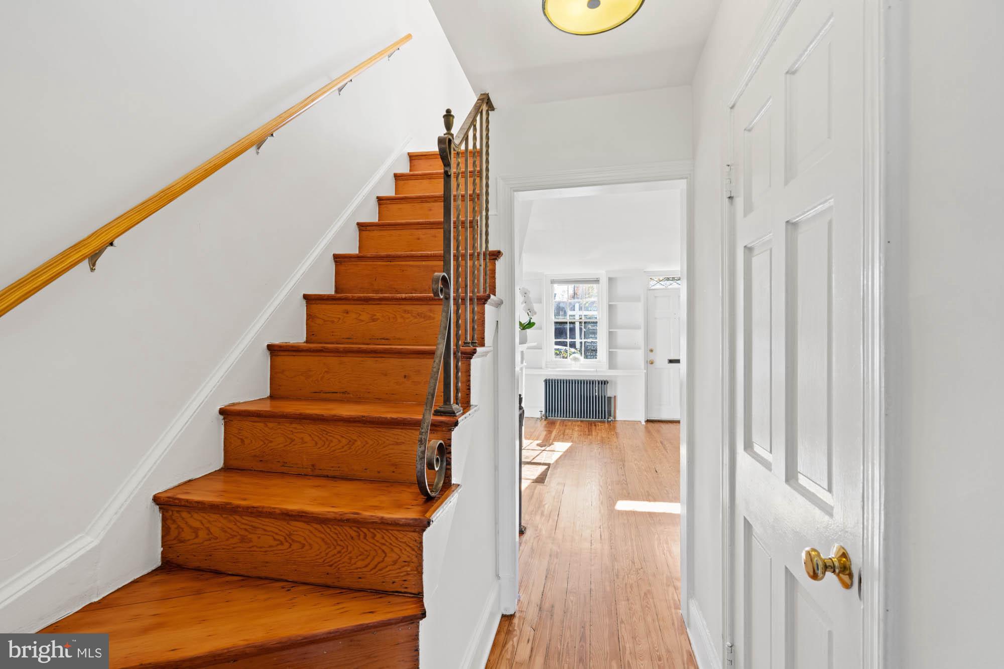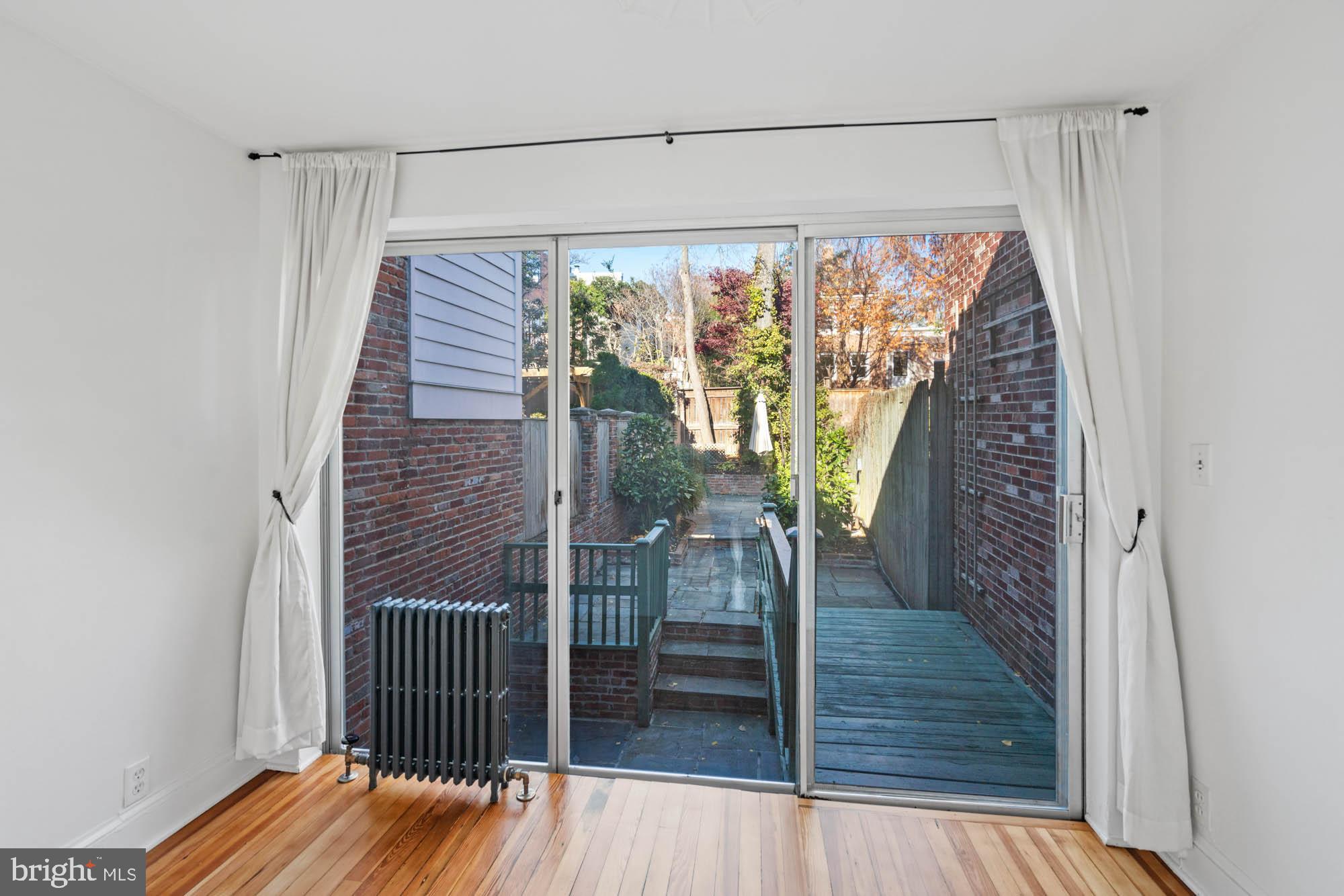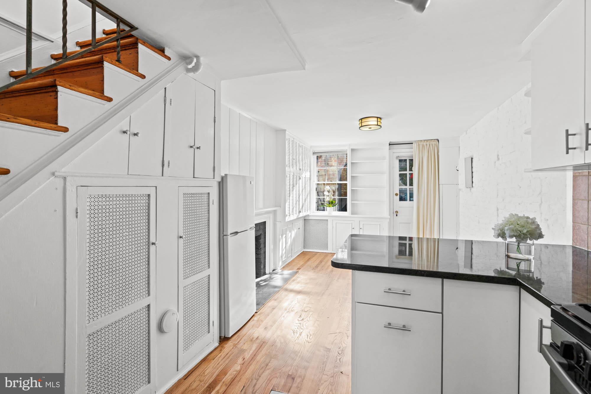 Behind its deceiving facade, this charming 1862 house in Georgetown Village features high ceilings, wood floors, and incredible natural light from its south-facing orientation. The top floor has two bedrooms, while the lower floor includes a living room, office, and bathroom. The kitchen and dining room open into a deep garden, perfect for enjoying outdoor space.