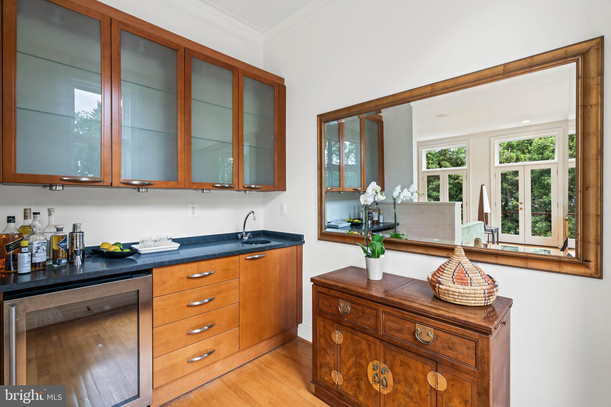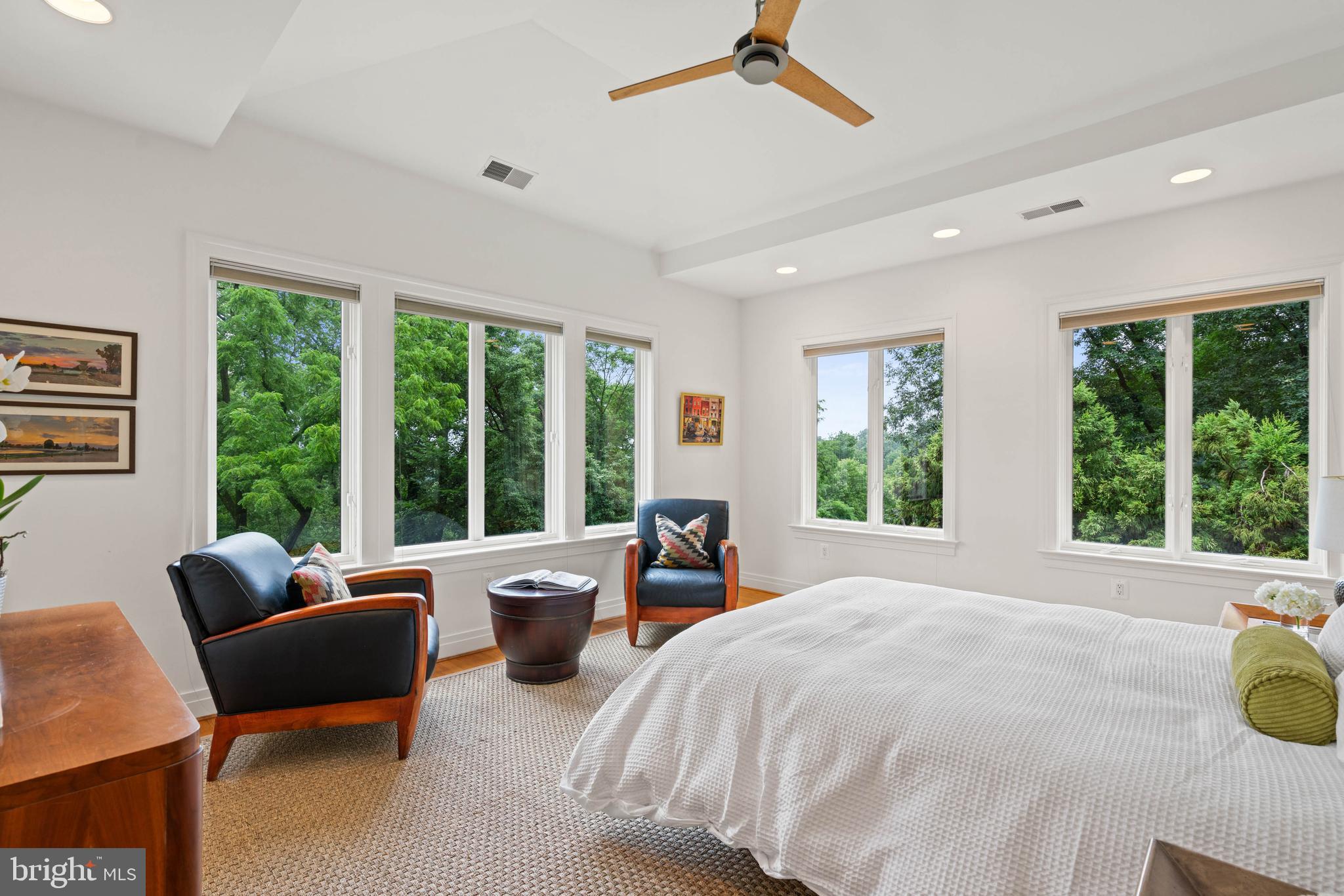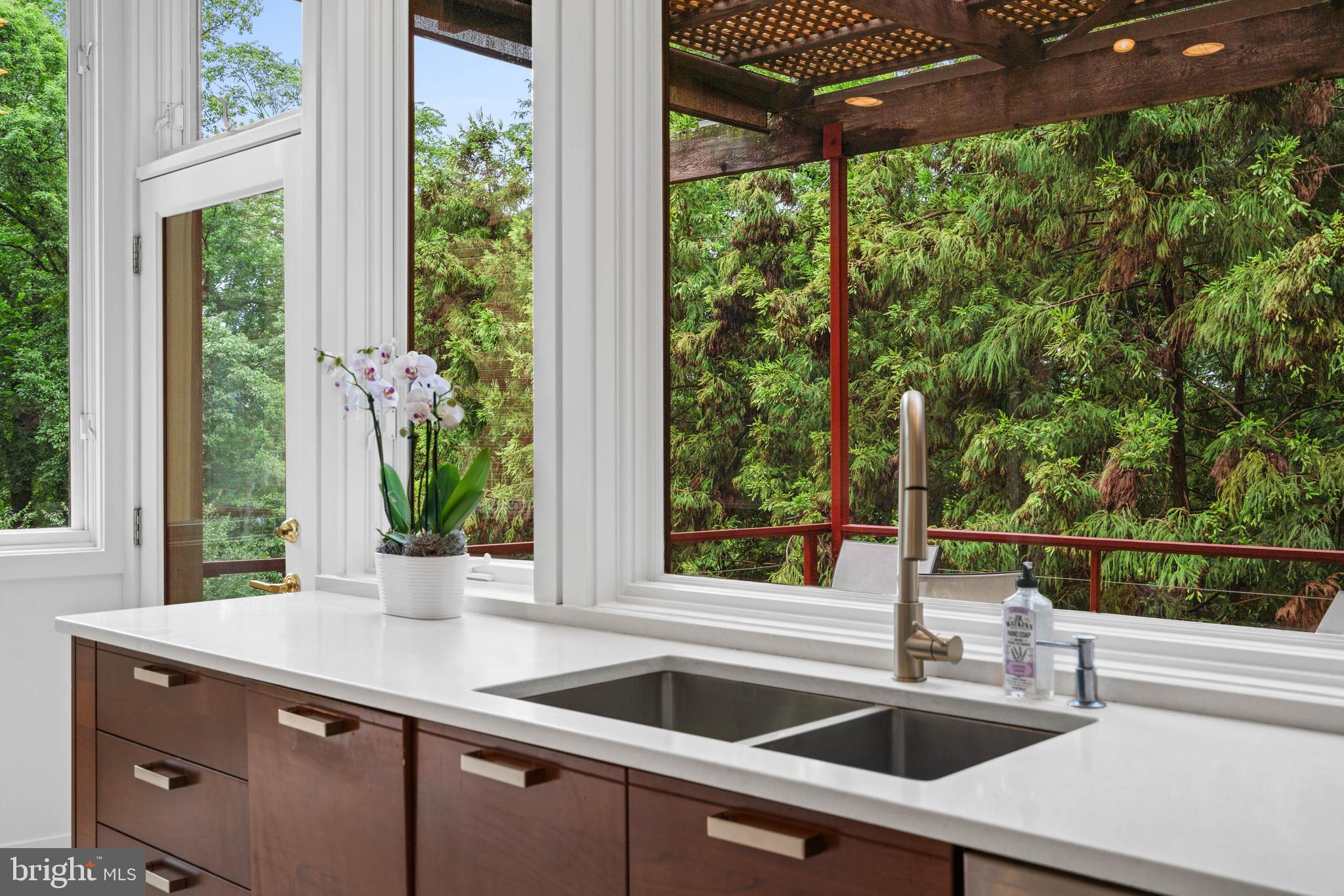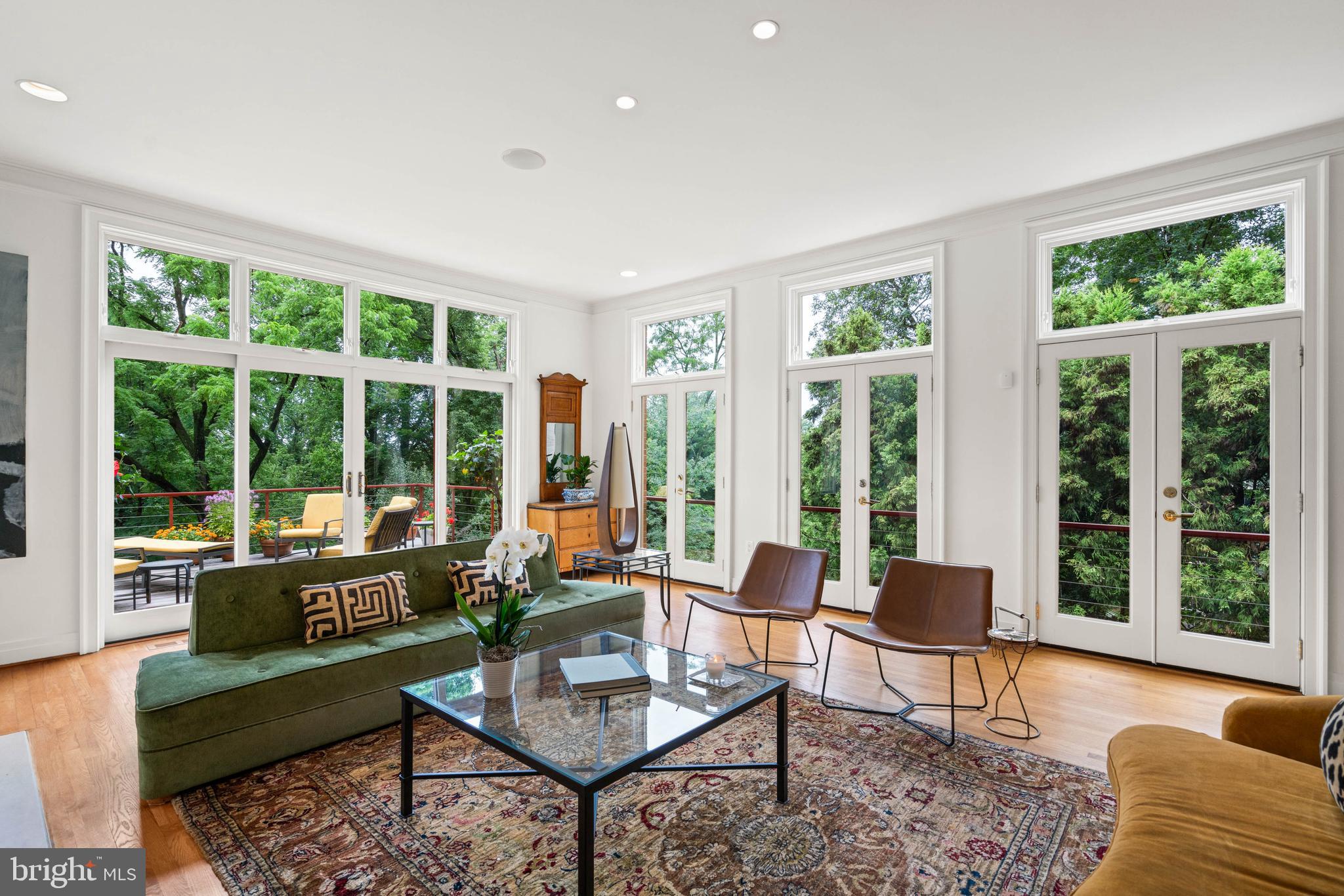 This private residence is sited on over half an acre in the sought-after Forest Hills neighborhood and within walking distance to the shops, restaurants, and the metro in Cleveland Park. It features five bedrooms, plus two additional standalone guest suites, which are ideal for multigenerational living, home offices, art studios or wellness/gym spaces. The home is surrounded by lush landscaping and mature trees and provides a harmonious blend of tranquil seclusion and city accessibility, embodying the natural beauty and quiet appeal that make the neighborhood so distinctive.