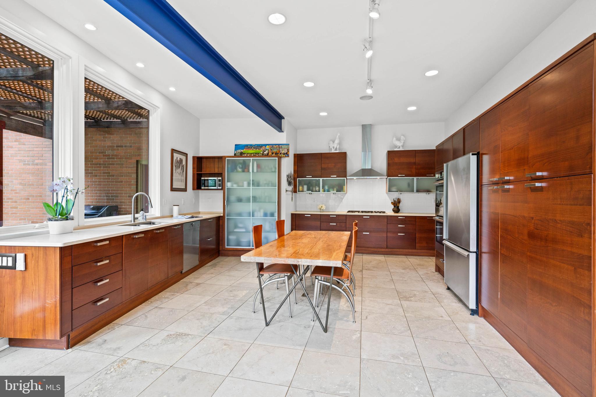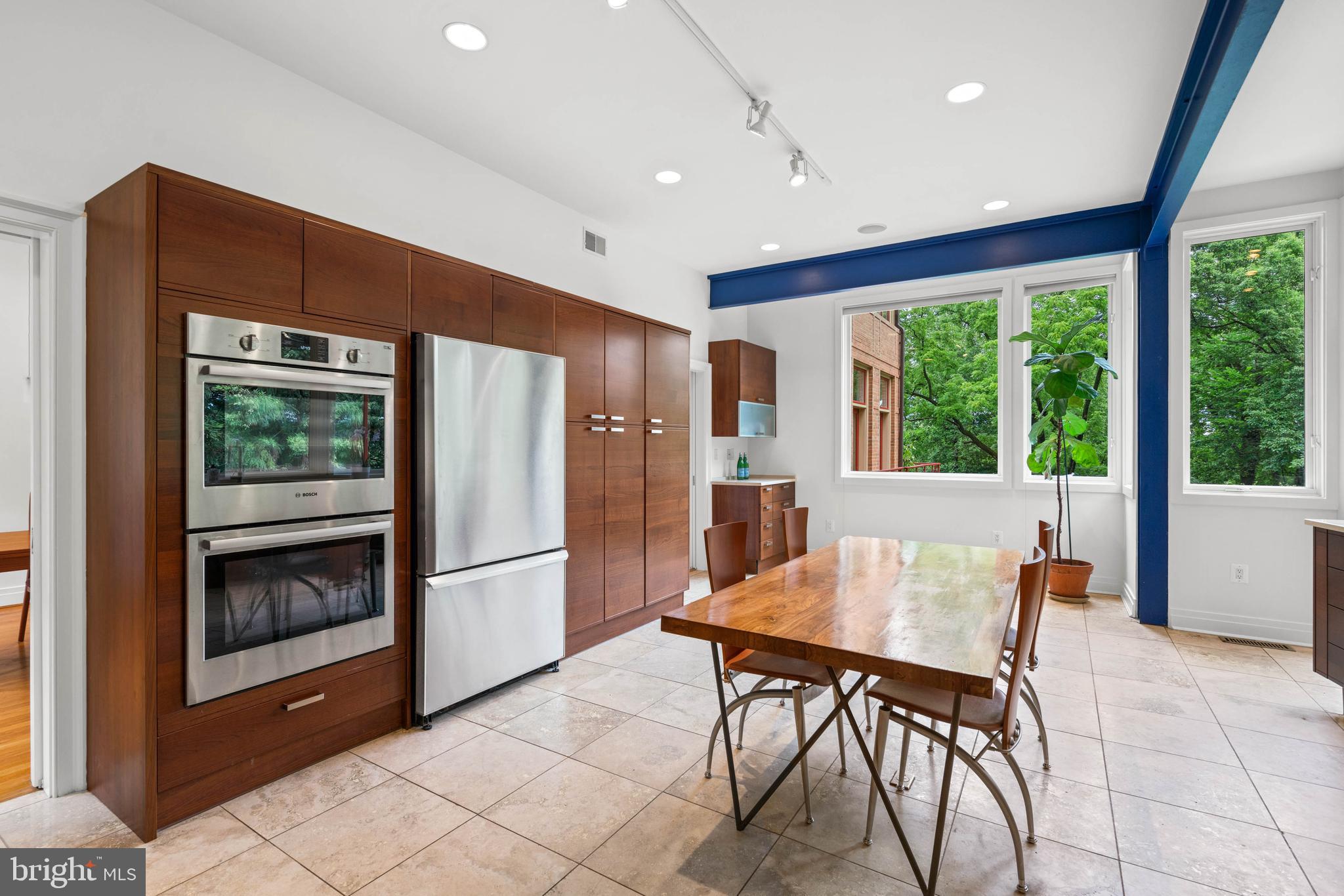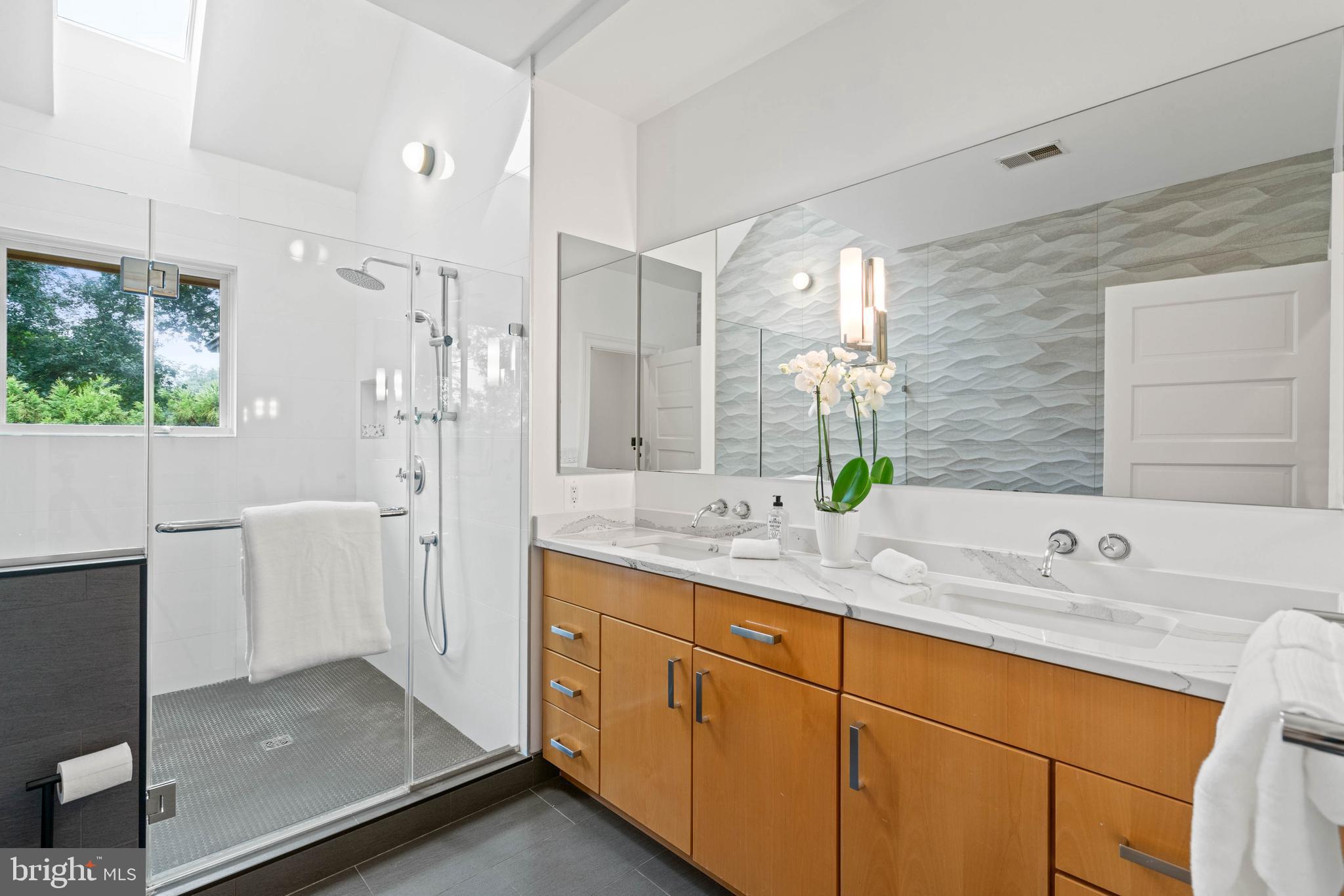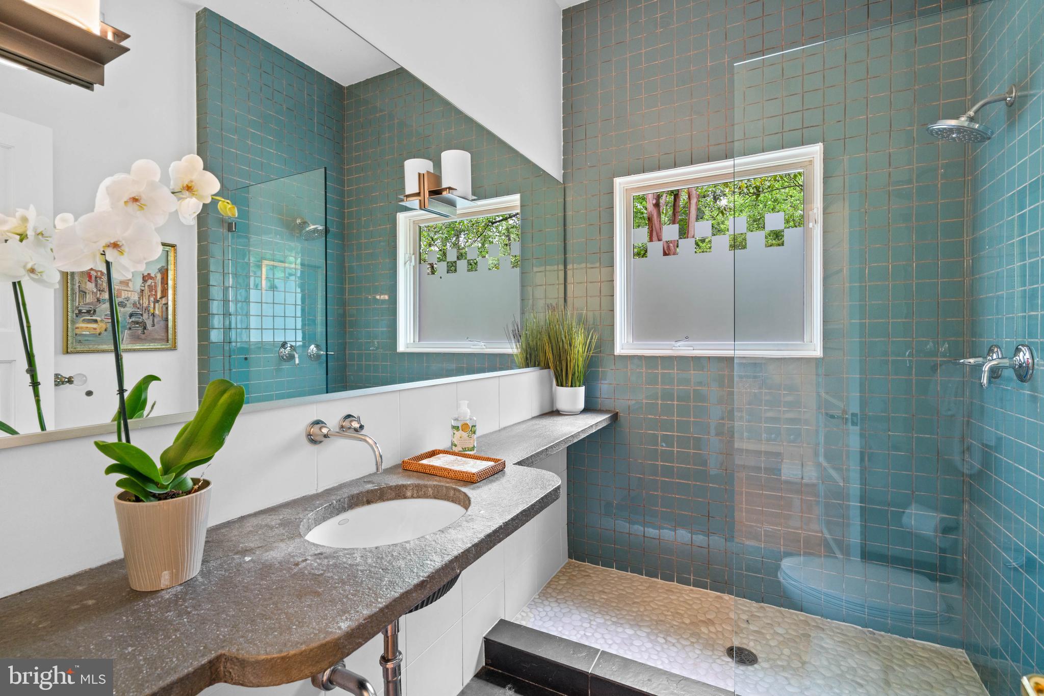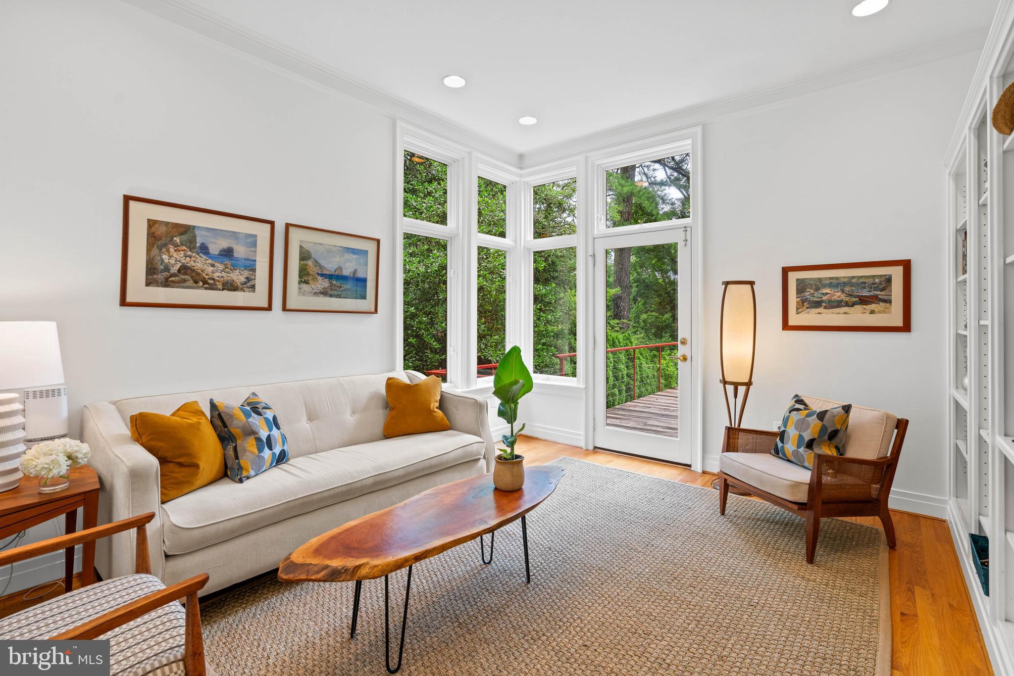 This private residence is sited on over half an acre in the sought-after Forest Hills neighborhood and within walking distance to the shops, restaurants, and the metro in Cleveland Park. It features five bedrooms, plus two additional standalone guest suites, which are ideal for multigenerational living, home offices, art studios or wellness/gym spaces. The home is surrounded by lush landscaping and mature trees and provides a harmonious blend of tranquil seclusion and city accessibility, embodying the natural beauty and quiet appeal that make the neighborhood so distinctive.