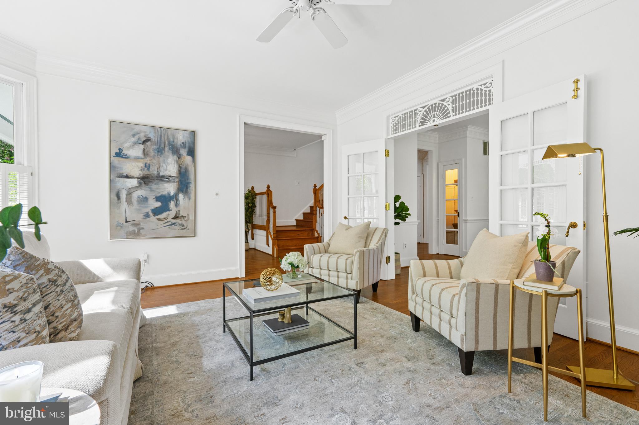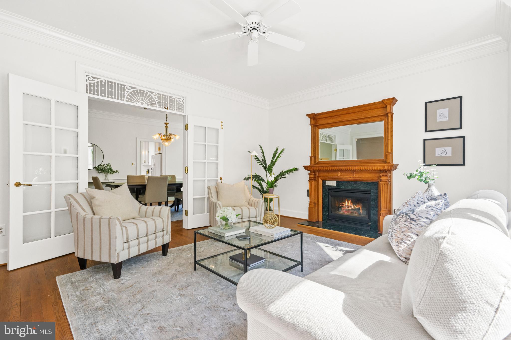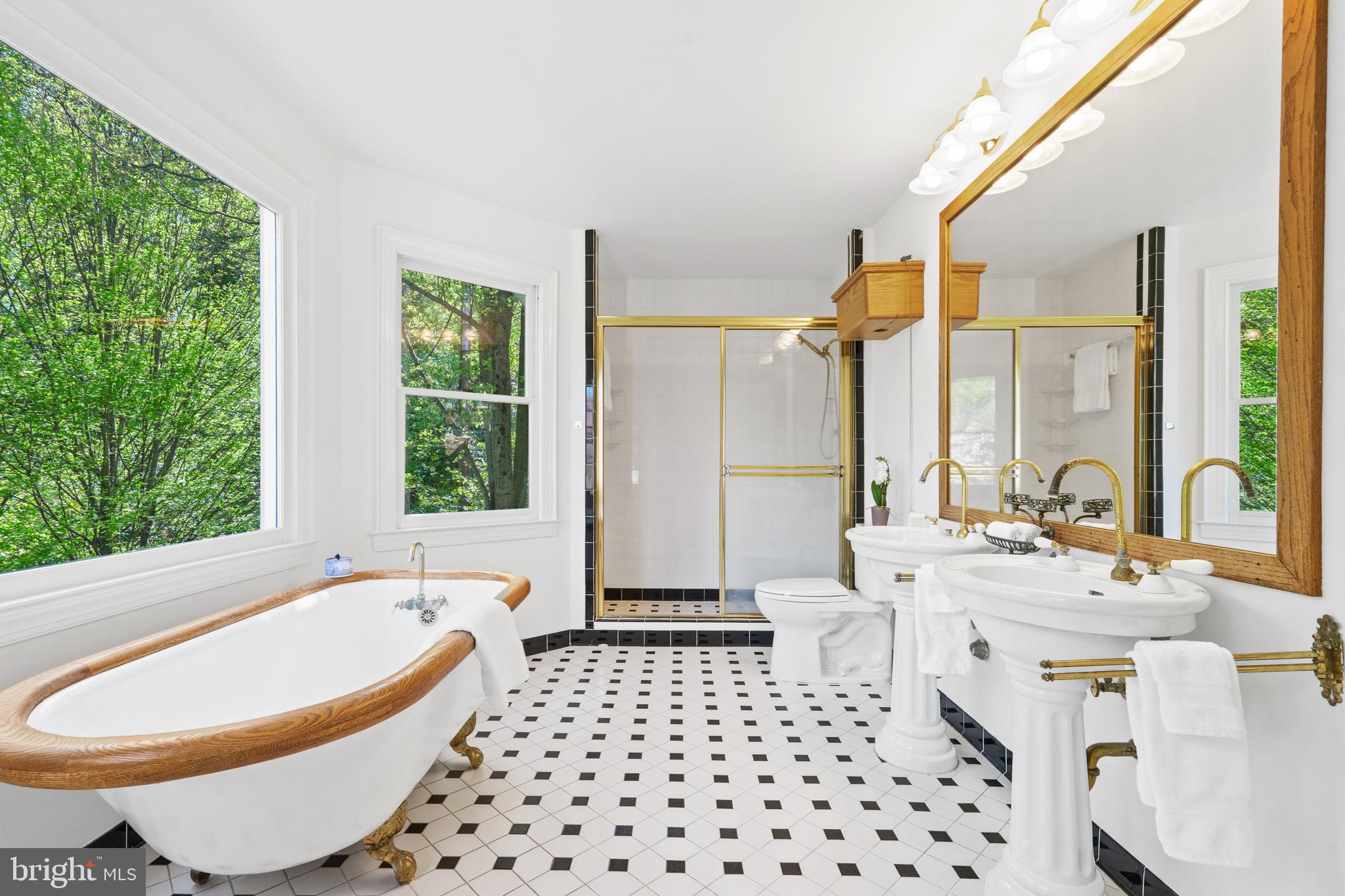 Ideally located on a sought-after street in Kent, this residence sits on a spacious combined lot of .33 acres. The home's charm and character is immediately evident upon entry, where a welcoming foyer and views to the rear of the house. The main level offers an air of comfort, presenting a desirably designed floor plan that balances generously scaled formal rooms with inviting family living spaces. Throughout the home, all rooms are filled with an abundance of natural sunlight from oversized windows. The living room features a lovely fireplace and is adorned with French doors leading to the dining room with wonderful views of the side lot. An open kitchen, replete with abundant cabinetry, seamlessly adjoins a breakfast room that offers deck access, providing a wonderful opportunity for indoor and outdoor entertaining. The impressive family room, with double height ceilings and a striking central stone fireplace, also provides deck access for an effortless indoor-outdoor lifestyle. The second level features three bedrooms and two full bathrooms, including the luxurious primary suite. The primary bedroom, generous in size and overlooking the rear grounds, is a haven of comfort. It is well-appointed with multiple closets, a spacious walk-in, and a private staircase leading to an exclusive third level that houses wonderful primary office and gym spaces. The sizable primary bathroom offers dual vanities, separate soaking tub, a shower, and linen closet. The additional bedrooms on this floor are spacious with large closets.The lower level extends the home's generous scale with an expansive recreation room with a fireplace, kitchenette, and built-ins. There are two additional bedrooms, a full bathroom, an oversized laundry room with a utility sink and ample storage, and direct access to the two-car garage from this floor. Outside, the rear deck provides a perfect setting for entertaining. The property conveys with an additional side lot to provide garden space and enhance privacy. The residence also enjoys access to a private community pool and tennis court. This exceptional offering is ideally positioned within close proximity to neighborhood restaurants, shops, and parks, promising a lifestyle of convenience on one of Kent's most coveted streets. Note: The side lot has an easement and cannot be built on.