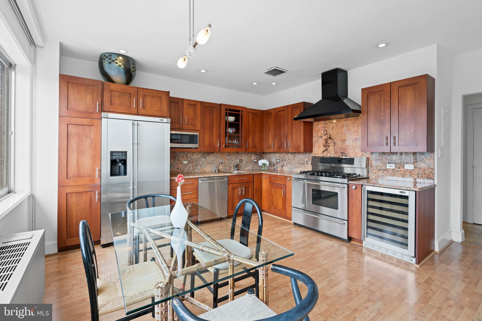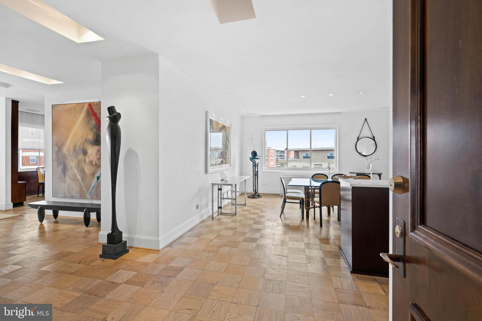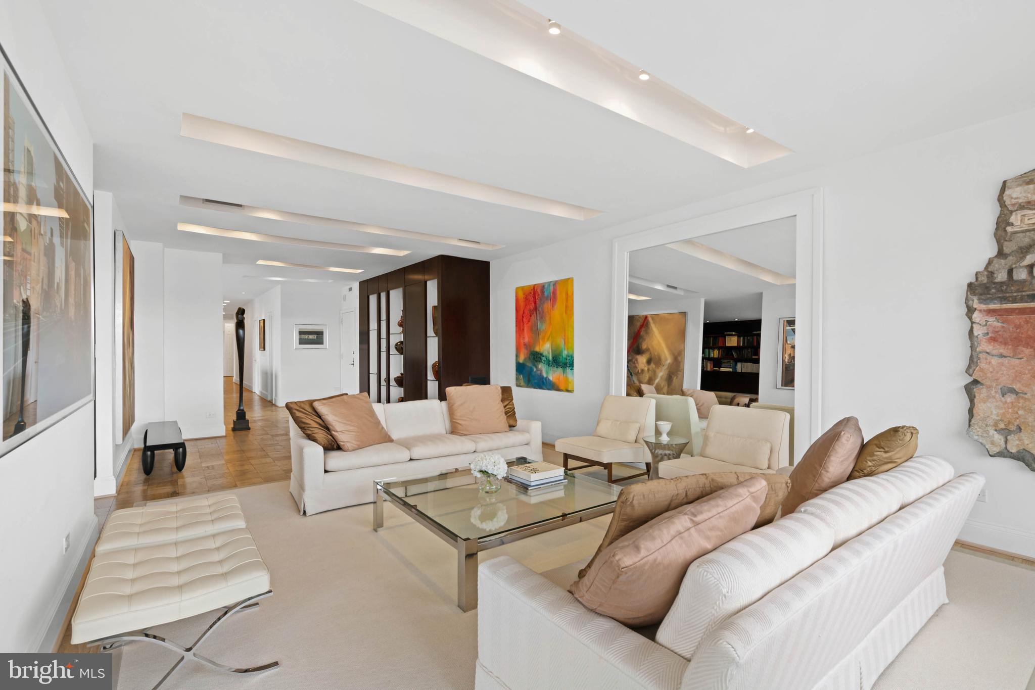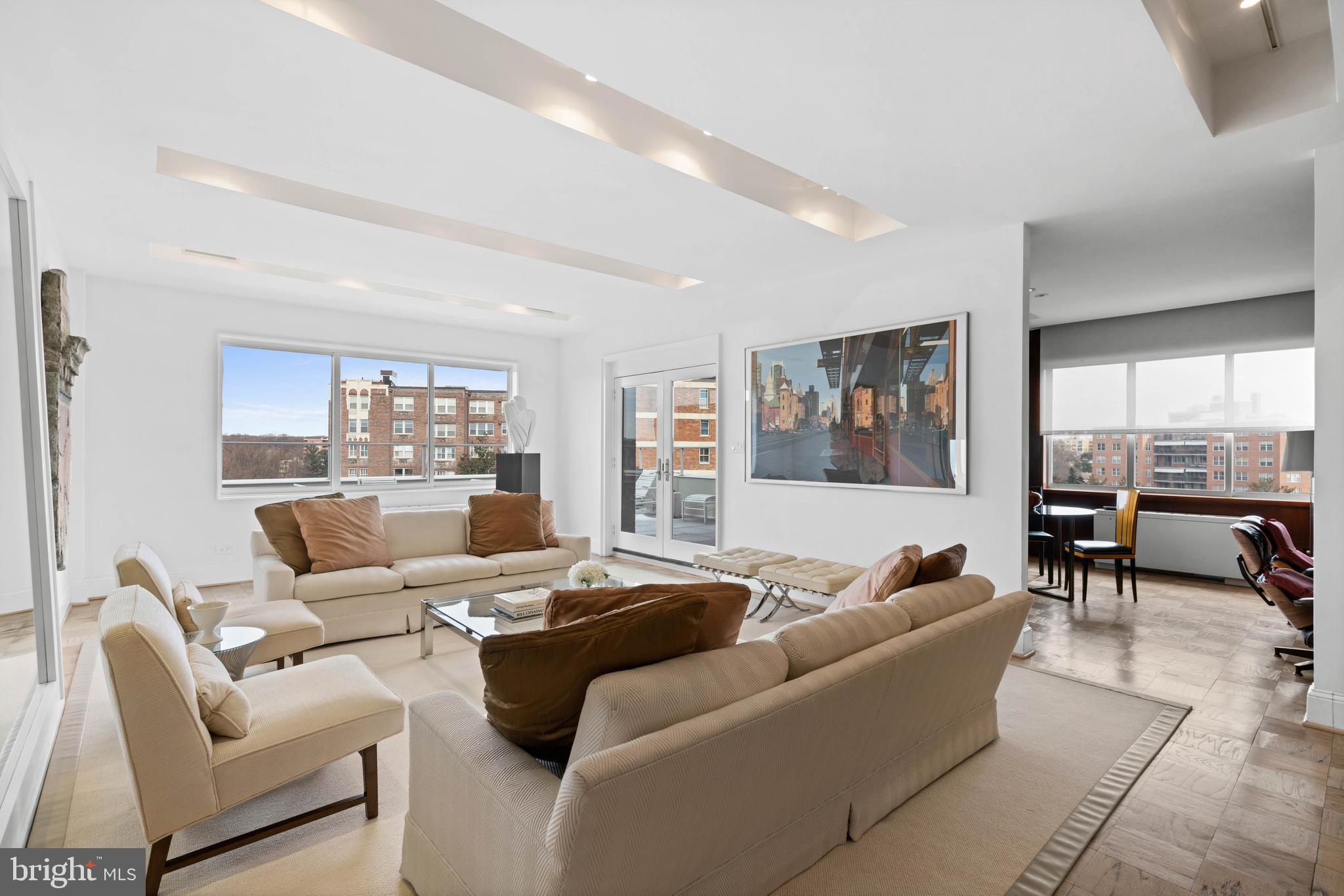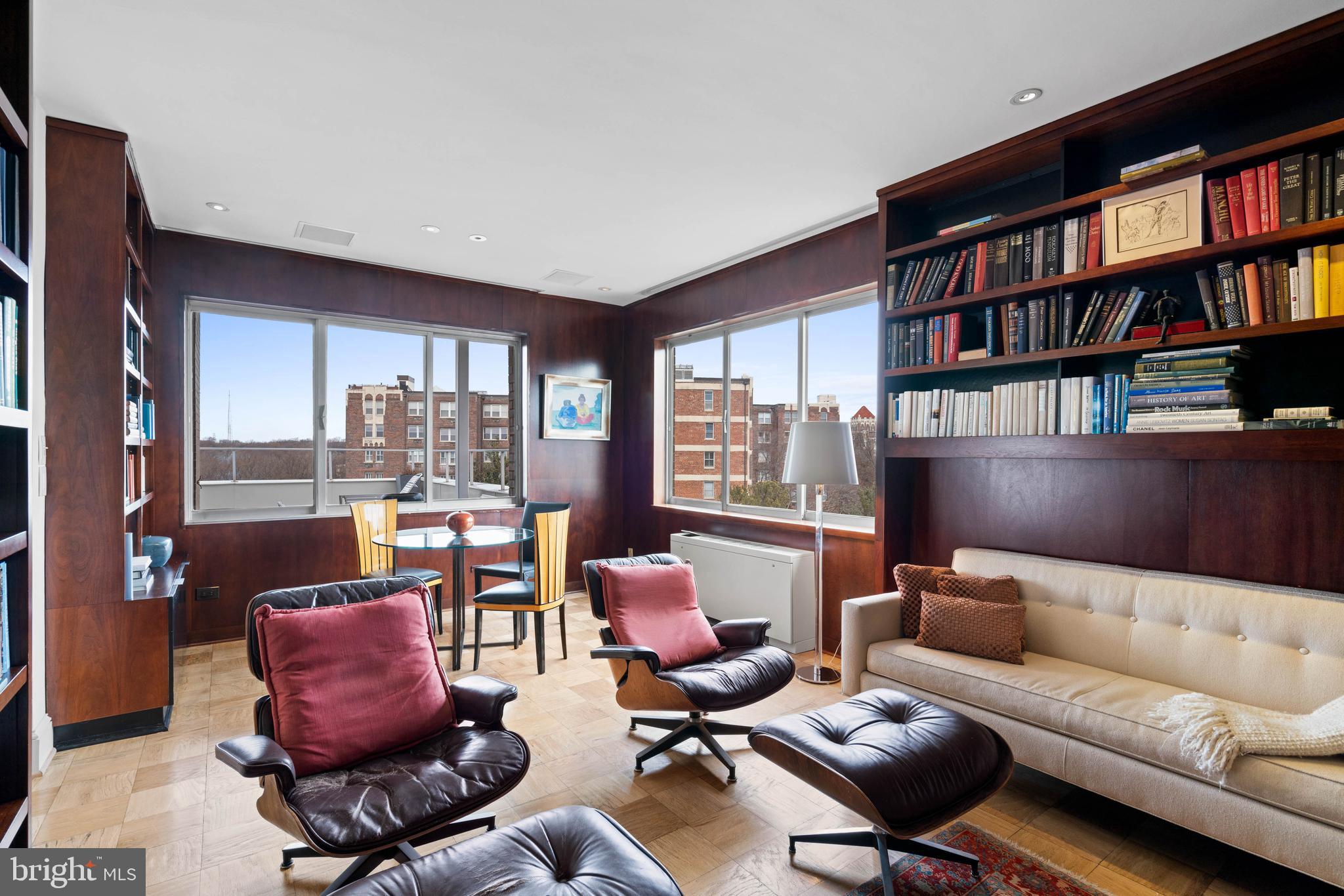 The Colonnade is a beacon of refined luxury and timeless elegance. This rare offering includes two combined units, Penthouses 7&8, a unique three-bedroom residence spanning over 3,000 square feet of expansive living space with an open, airy floor plan. Panoramic views of the iconic Washington National Cathedral and breathtaking sunsets are framed by oversized windows and a private balcony, creating a serene backdrop for daily living. This distinguished building beautifully blends classic charm with modern amenities, including a meticulously maintained lobby that exudes grandeur and exceptional concierge service. Upon entering, a gracious foyer leads into the spacious living room, where large windows bathe the space in natural light. Flowing seamlessly from the living area, a private penthouse terrace offers the perfect setting for indoor-outdoor living and al fresco dining. A custom wood-paneled office, with built-in shelving and a tailored TV console, provides an elegant space for both work and relaxation. The updated kitchen features granite countertops, generous cabinetry, and modern appliances, paired with a charming breakfast area. Ideally located next to the formal dining room, it offers an effortless flow between the two spaces. The primary suite serves as a true retreat, boasting a spacious layout, a large tiled shower, and a soaking tub. The second bedroom, featuring a built-in desk, includes an ensuite bathroom for added privacy. A versatile third bedroom or sitting room--ideal as a home office or creative studio--features a dual-seated desk and is complemented by a third full bathroom. Additional features include 24-hour doorman service, a newly renovated fitness center, a salon, dry cleaning service, a party room with catering kitchen, and a heated swimming pool (available mid-April through mid-October). Residents can also enjoy beautifully landscaped gardens, picnic areas with grills and fire pits, and two reserved parking spaces, along with three dedicated storage units. Just across the street, the expansive Glover Archbold Park provides a serene escape right at your doorstep. This exceptional offering in Cathedral/Wesley Heights combines luxury, space, and convenience--an extraordinary opportunity to own a distinguished residence in one of Washington D.C.'s most sought-after neighborhoods.