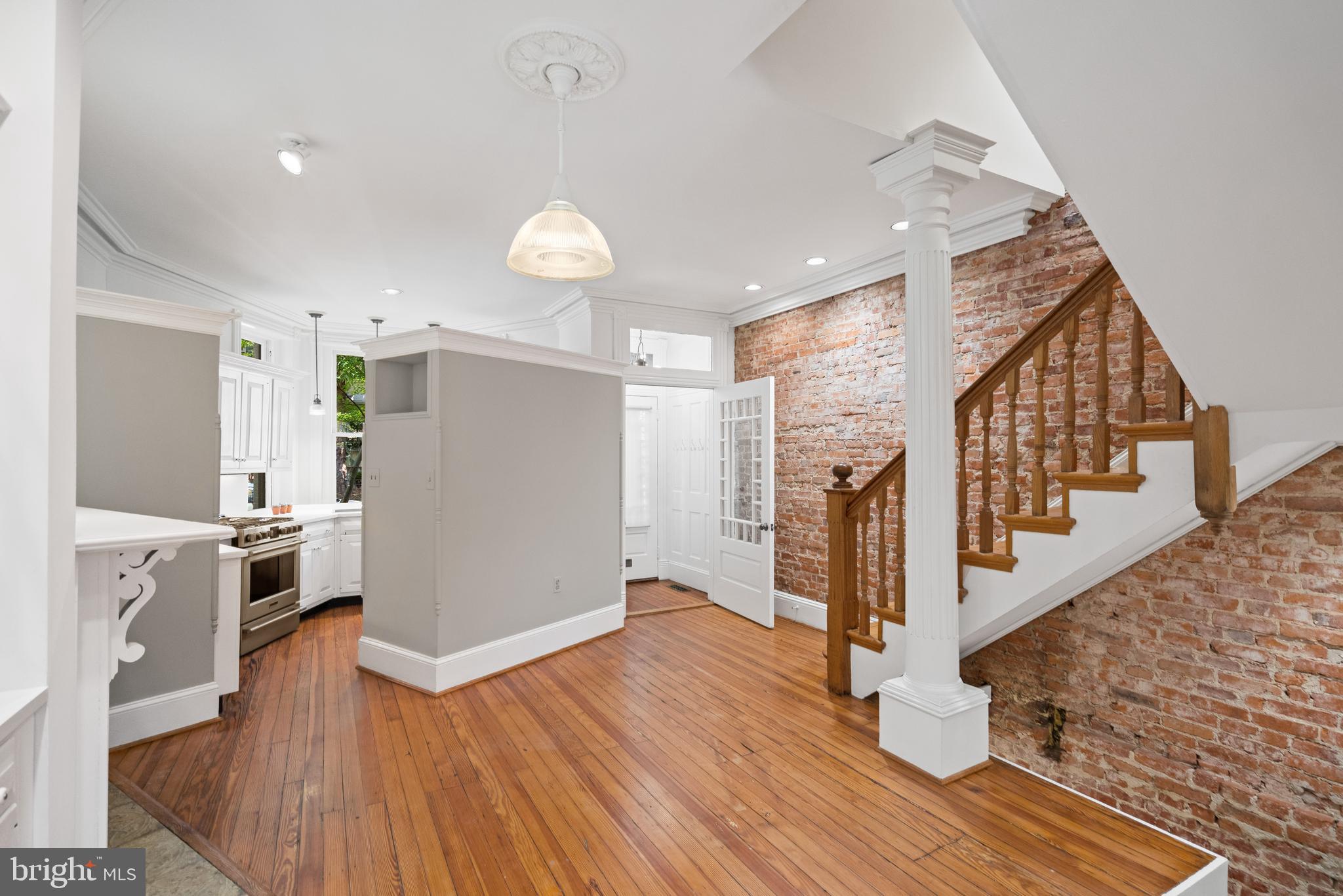 Well positioned on a highly desirable, tree-lined one-way street in the East Village of Georgetown, this elegant four-level Federal-style townhome presents a rare opportunity to reside in a light-filled historic residence. Just steps from the gardens, tennis courts, and walking paths of Montrose Park and Dumbarton Oaks, the home offers a remarkable sense of privacy while remaining within close reach of the fine dining, boutique shopping, and vibrant lifestyle that define this distinguished neighborhood.