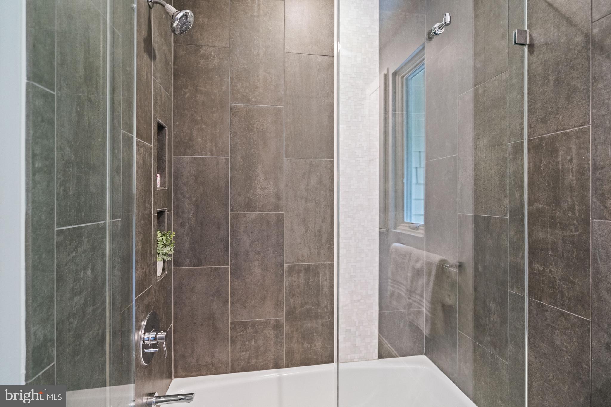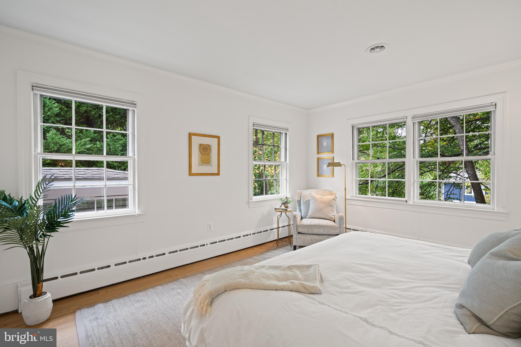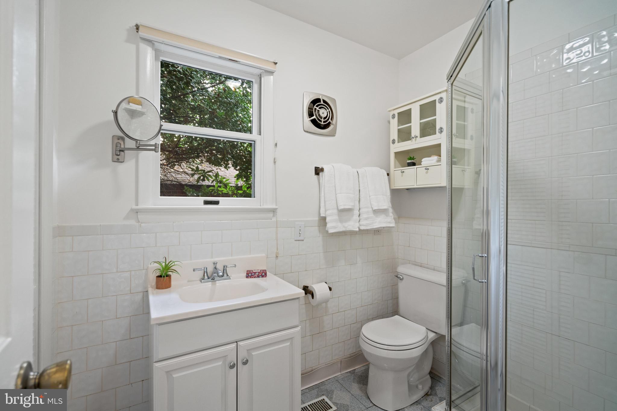 Upstairs, the luxurious primary suite offers treetop views through large windows, a custom walk-in closet, and a spa-inspired bathroom with dual vanities and a frameless glass shower. Three additional bedrooms feature sunny exposures, hardwood floors, and individual closets. The upper level is enhanced by a beautifully renovated hall bathroom, along with a linen closet and walk-up attic that provide extra storage.