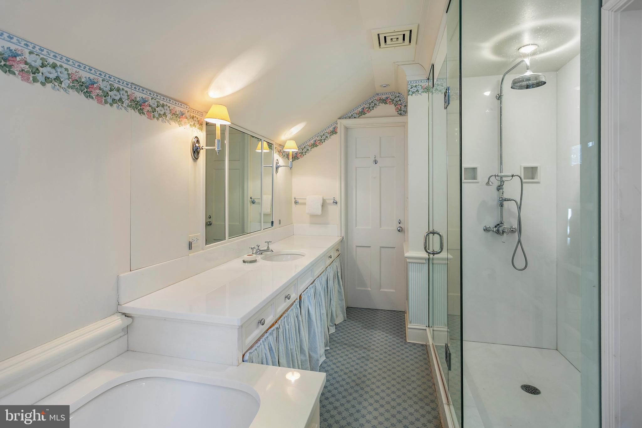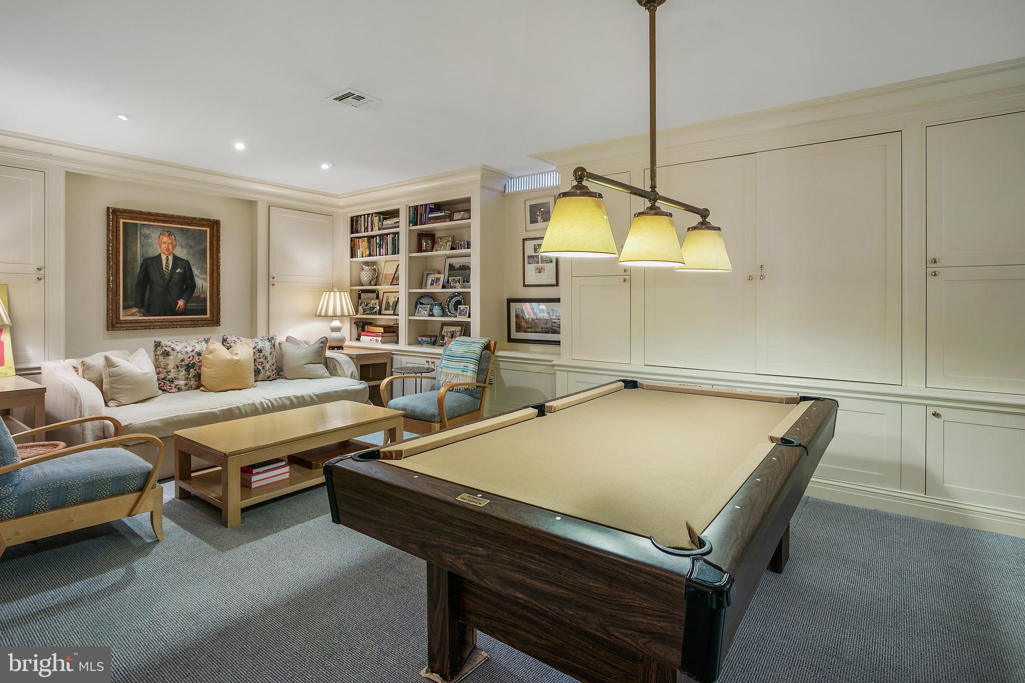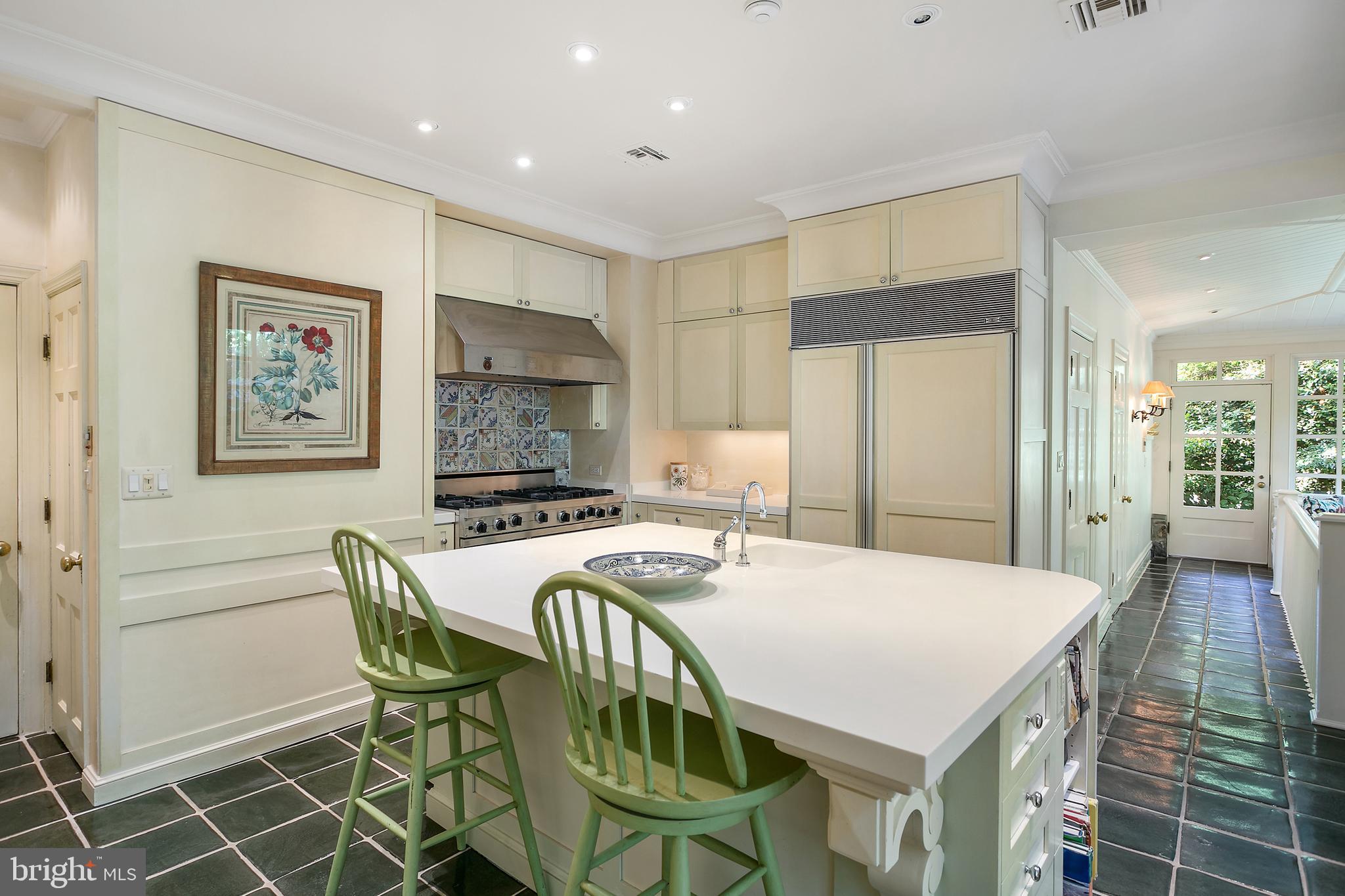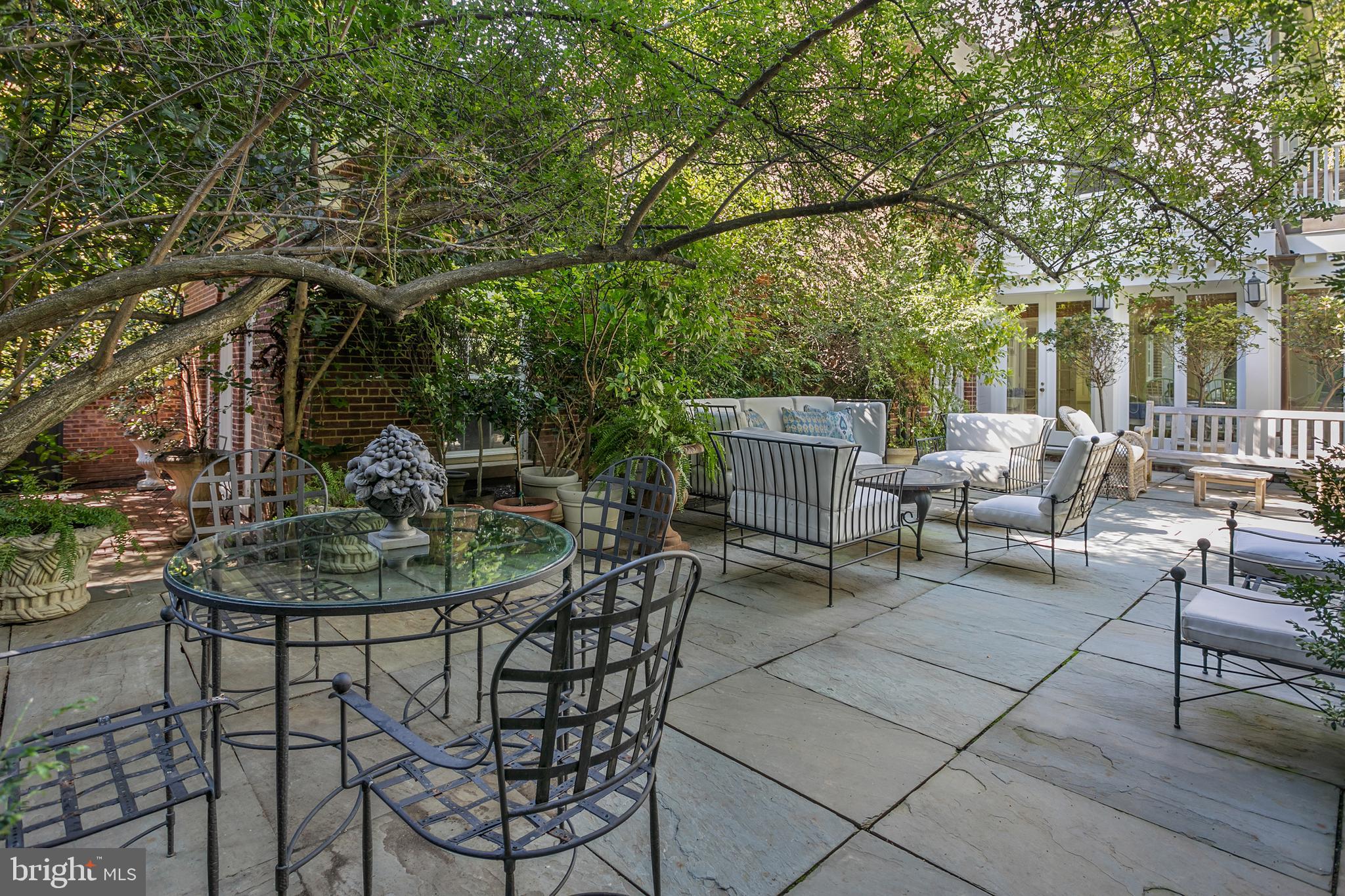 This stately 1927 Georgian Revival is located on a highly desirable street in the sought-after Wesley Heights neighborhood. The beautiful house is set back from the street behind a row of manicured hedges, providing wonderful privacy. The impressive home sits on over half an acre lot, with beautifully designed gardens and a pool. The charming interior features generously proportioned entertaining rooms, as well comfortable family living spaces, professionally designed by William Hodgins. The elegant rooms are light-filled, with an abundance of natural sunlight coming from large windows throughout. There is also the added convenience of an elevator to three floors. The magnificent reception foyer features handsome moldings and cornices, as well as intricately detailed wood floors. The entry foyer seamlessly transitions to the sophisticated living room, which offers a lovely central fireplace with an eighteenth-century French limestone mantle, attractive arched transom windows, and French doors to the terrace. The neighboring dining room, which can also be accessed from the reception foyer, is exceptionally scaled and enhanced with thick crown moldings. The dining room provides direct access to the enchanting sunroom, which provides a garden ambiance and is fully windowed on three sides, affording stunning views of the rear garden and lovely water feature. The gourmet kitchen offers a large center island with a breakfast bar, abundant cabinetry storage, and a Viking six-burner range. There is also an elegant library on this floor, which has an additional fireplace and a convenient powder room. Completing the main level is a side entrance that provides access to a bedroom suite, nanny's bedroom, the one-car garage, and the lower level. The second level has three bedrooms and three full bathrooms, including the gracious primary suite. The primary bedroom is well-appointed with a private balcony, en-suite bathroom, and a generous walk-in closet. There is also an adjoining sitting room, complemented with a fireplace and built-in bookshelves. The two additional bedrooms on this floor are both spacious and have en-suite bathrooms. The third floor provides a large open flexible-use space with an impressive roof deck. The room is currently being used as a bedroom, providing a large walk-in dressing room and an updated full bathroom. The lower level has a family room with built-ins, a secondary kitchenette with a breakfast bar, multiple large storage rooms, a sizable laundry room with a utility sink and storage, and a full bathroom with a frameless glass shower. This extraordinary residence is exceptional for entertaining with multiple terraced seating areas, a pool, water fountain feature, rear yard, mature trees, and lush professional landscaping. The house is within walking distance to neighborhood favorite restaurants, shops, and parks.