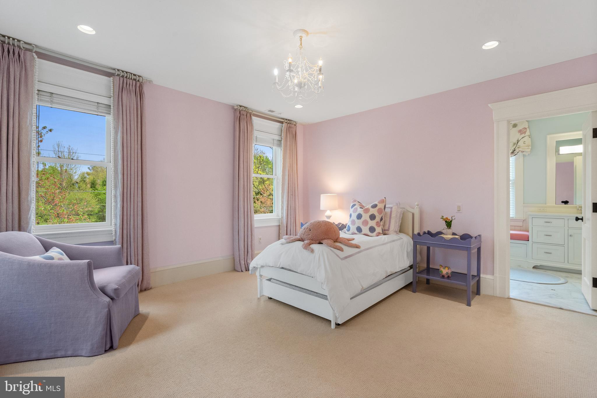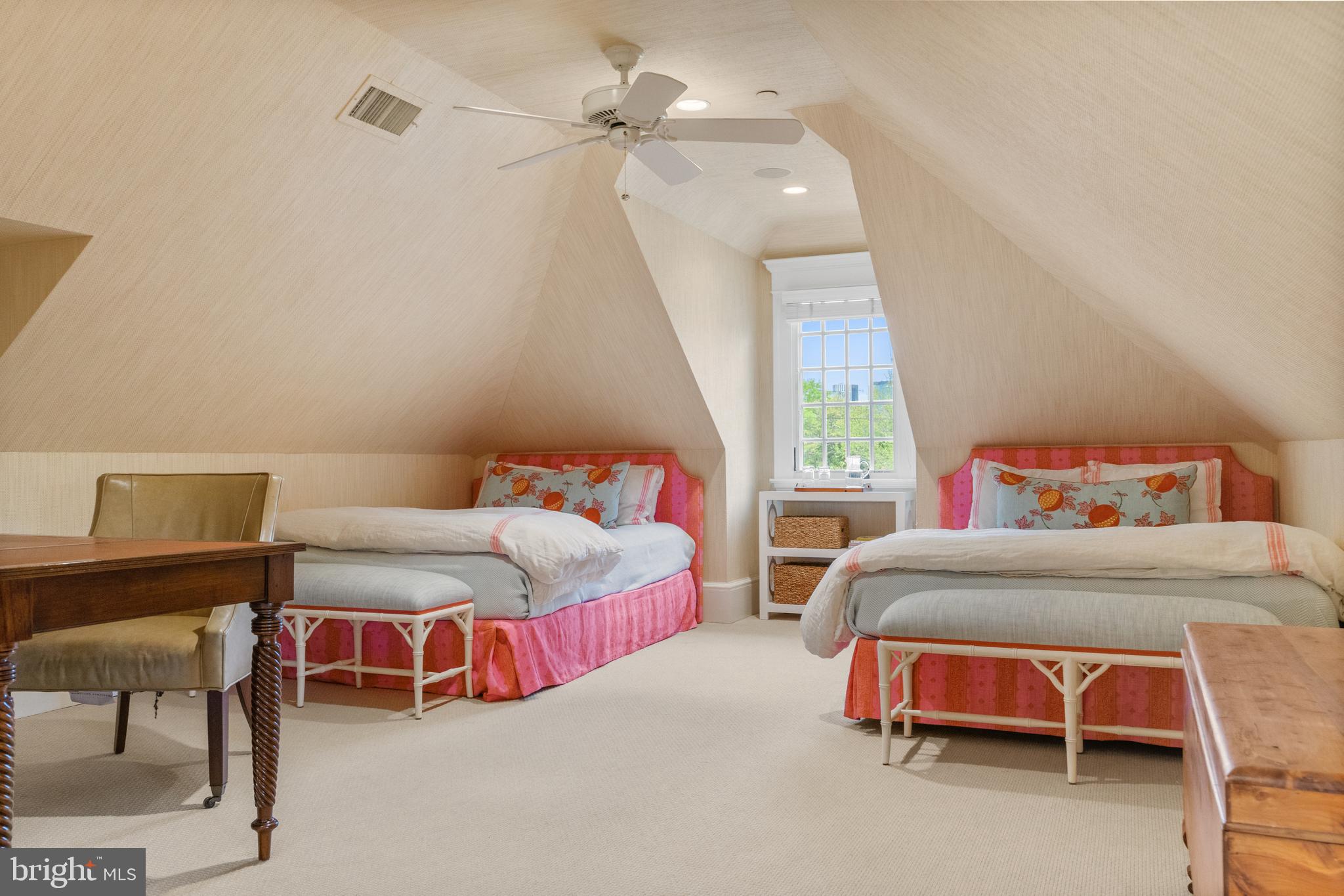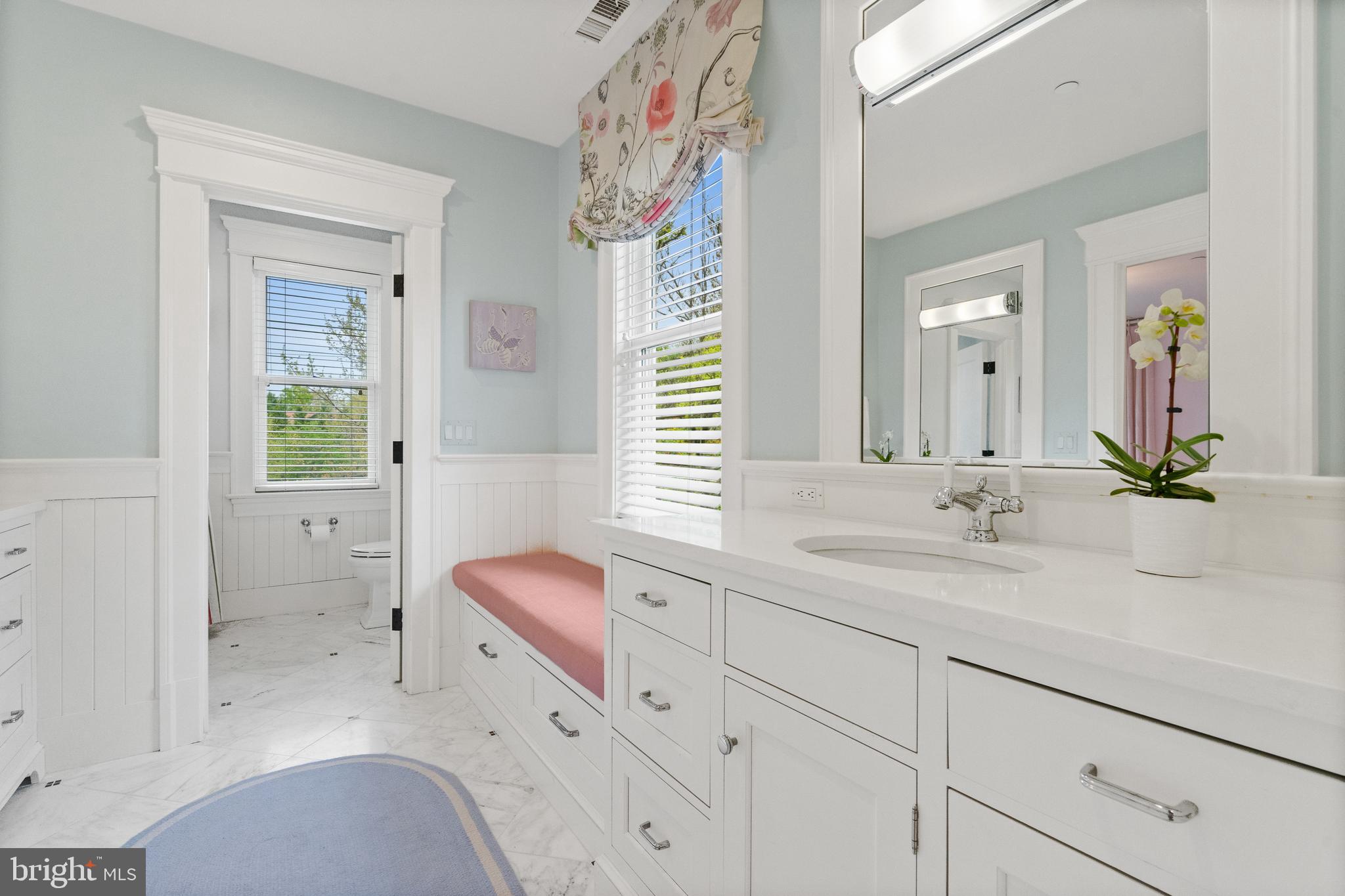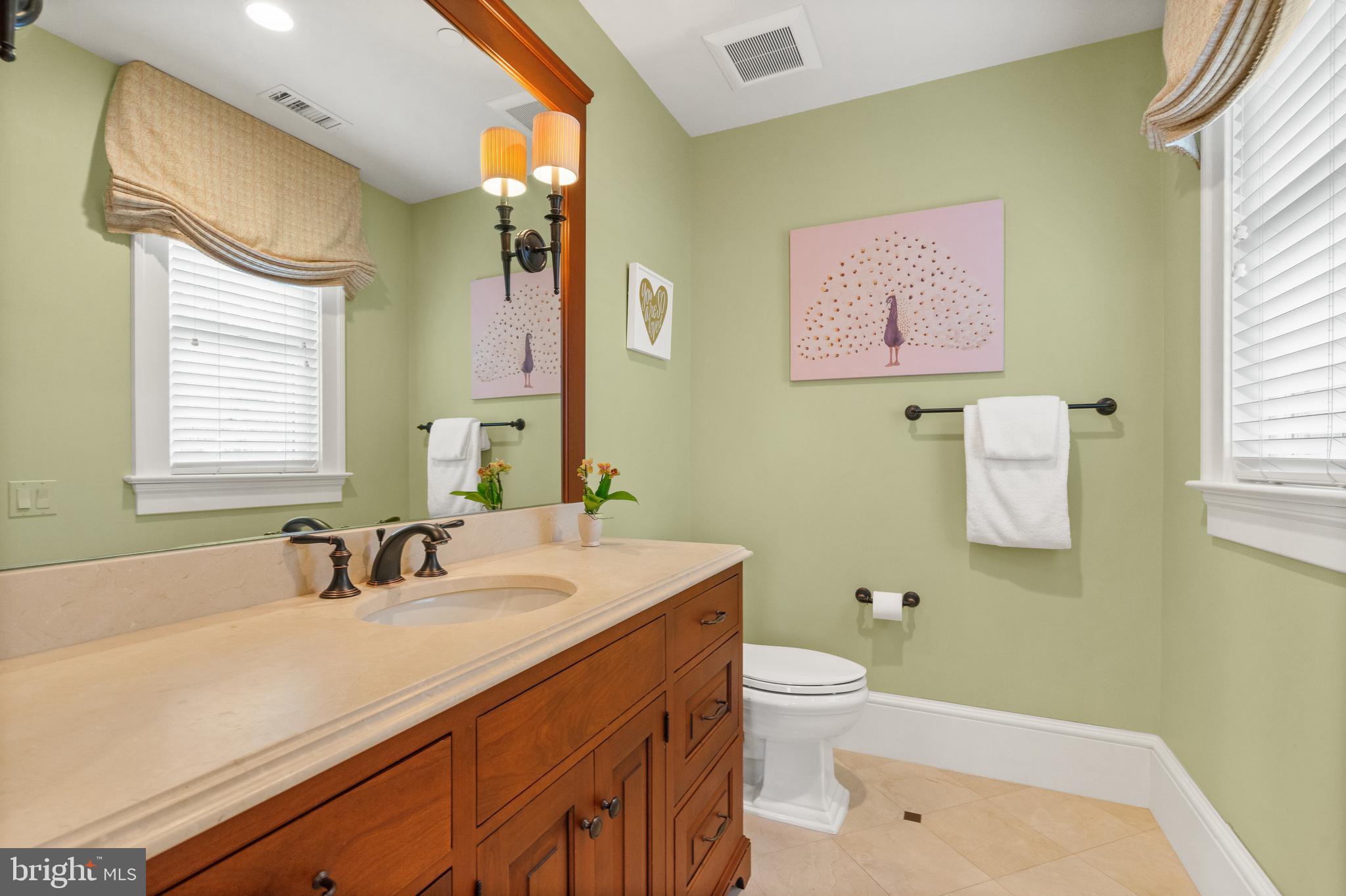 Located within the historic Village of Drummond neighborhood and sited on a flat .36-acre lot, this stunning residence boasts exceptional curb appeal, highlighted by its distinctive turret and an inviting wrap-around front porch. Constructed in 2010 by the renowned Jim Gibson and Sandy Spring Builders, this home spans over 8,000 square feet of meticulously designed and crafted interior living space, marrying timeless elegance with the luxuries of modern-day living. Upon entry, the home greets you with a gracious foyer complemented with inlay wood floors, thick crown moldings, paneled walls, and expansive sightline views through to the rear of the property. The main hall, featuring an oversized coat closet, guides you seamlessly into the generously scaled living areas, each designed with meticulous attention to detail. The home's wood-accented office, complete with French doors, opens to a light-filled living room graced by three large windows. The adjacent dining room has a coffered ceiling and sits conveniently near the butler's pantry, which boasts marble countertops and ample storage, ensuring seamless entertaining. The heart of this home is its well-appointed kitchen, featuring a walk-in pantry, a marble center island with a breakfast bar, high-end appliances, including dual Miele refrigerators and freezers, and a deep farmhouse sink with a window overlooking the lovely rear yard. The kitchen adjoins a sunny breakfast are with exterior access and a spacious family room, anchored by a soaring ceiling and elegant fireplace. Additional main level highlights include a screened porch, mudroom, and powder room. Ascending to the second level, you are greeted by three luxurious bedroom suites, plus the luxurious primary. This sanctuary offers an exceptional walk-in dressing room, a private sitting room, a coffee bar with a mini-fridge, and a balcony with serene views of the rear grounds. The en-suite primary bathroom features dual vanities, a multi-feature shower, and a separate soaking tub. The additional bedroom suites are equally impressive, offering ample sunlight and large closets, alongside a convenient hall laundry room. The third floor presents additional living space with another generous bedroom, bathroom, and extensive storage. The lower level is a haven for entertainment and leisure, featuring a large playroom, temperature-controlled wine cellar, media room with a gas fireplace, gym, an additional bedroom, a full bathroom, and large storage room. Outside, the residence showcases beautifully landscaped gardens, multiple terraces, mature trees, a fire pit area, and an irrigation system, ensuring a picturesque setting for outdoor enjoyment. Security is paramount for this home, with wrought iron fencing and an automatic gate. Also, a detached two-car garage and additional driveway parking accommodate multiple vehicles. This remarkable residence is a testament to unparalleled craftsmanship and design, offering a blend of luxury, comfort, and sophistication in one of the most coveted neighborhoods in Montgomery County. The location is walking distance to parks, trails, Metro, and restaurants and shopping in downtown Bethesda.